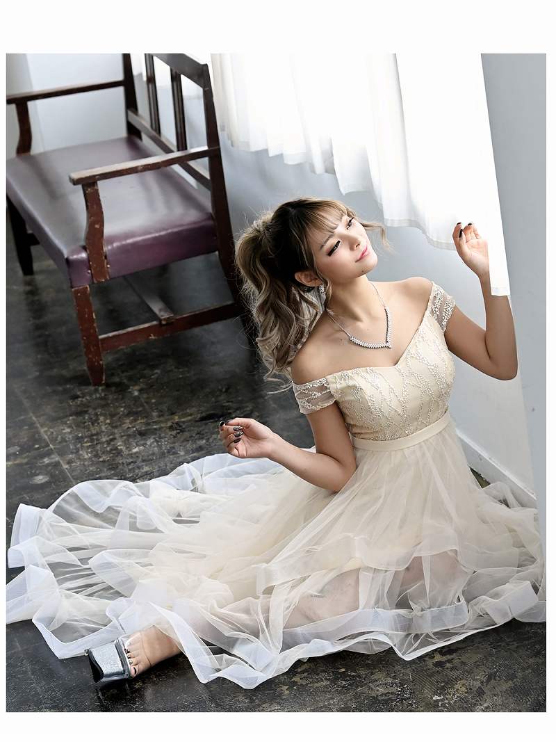 【訳ありアウトレット】キャバ ドレス キャバドレス ロングドレス ロング キャバクラドレス キャバクラ パーティードレス セクシー 韓国ドレス 韓国 ナイトドレス 刺繍 キャバ嬢 オフショルダー フリル ワンカラー エレガント チュール キャバドレス ロング あす楽 送料無料