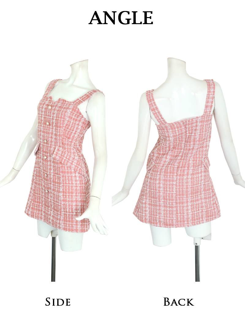 【一部予約販売】キャバ ドレス キャバドレス ミニドレス ミニ キャバクラドレス パーティードレス セクシー 韓国ドレス ツイード チェック柄 かわいい キャミワンピース ジャンパースカート 韓国風 プチプラ ミニ丈 同伴 男ウケ RyuyuChick りせり 大きいサイズ 送料無料