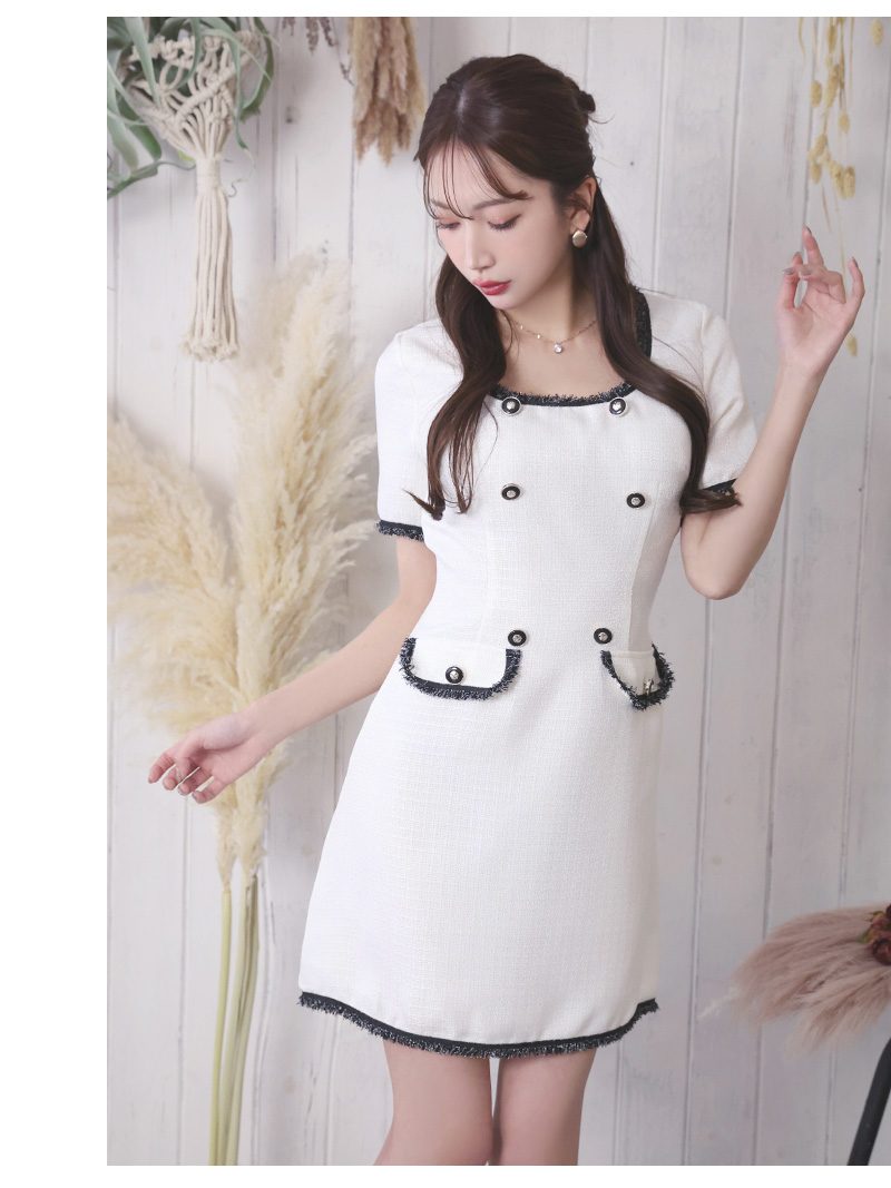 キャバ ドレス キャバドレス ミニドレス ミニ キャバクラドレス パーティードレス セクシー 韓国ドレス ツイード 韓国風 上品 袖付き 同伴 Aライン かわいい ライトツイード キャバクラワンピース キャバ嬢ドレス Ryuyu 大きいサイズ 可愛い きれいめ 膝丈 あす楽 送料無料