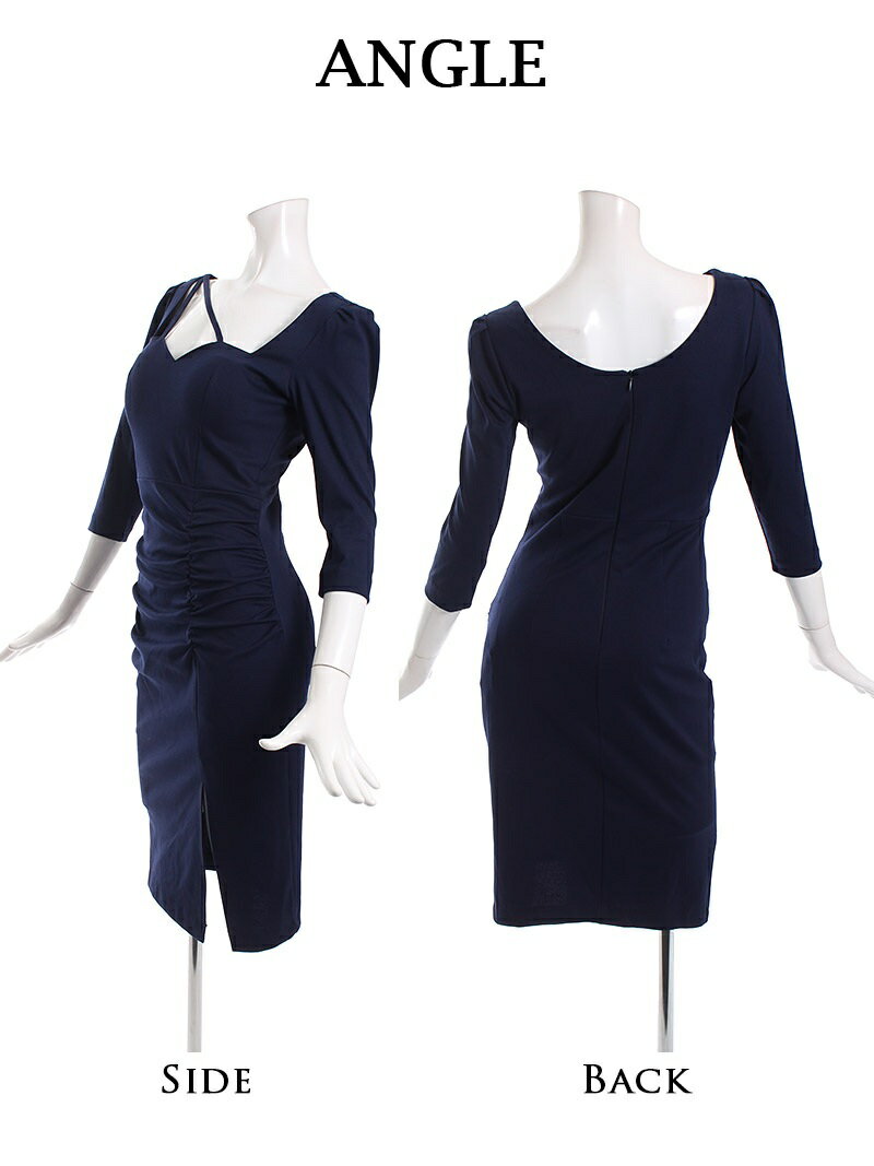 キャバ ワンピース ワンピ キャバワンピース キャバワンピ レディース パーティードレス シャーリング アシンメトリー ワンカラー 五分袖 ストレッチ タイト 無地 韓国 キャバワンピース キャバクラドレス DaysPiece KANO 大きいサイズ フレアーワンピ あす楽 送料無料