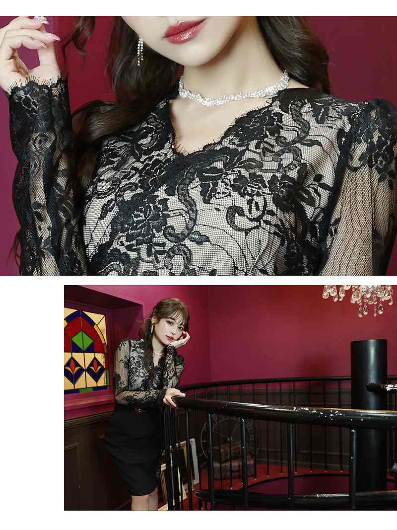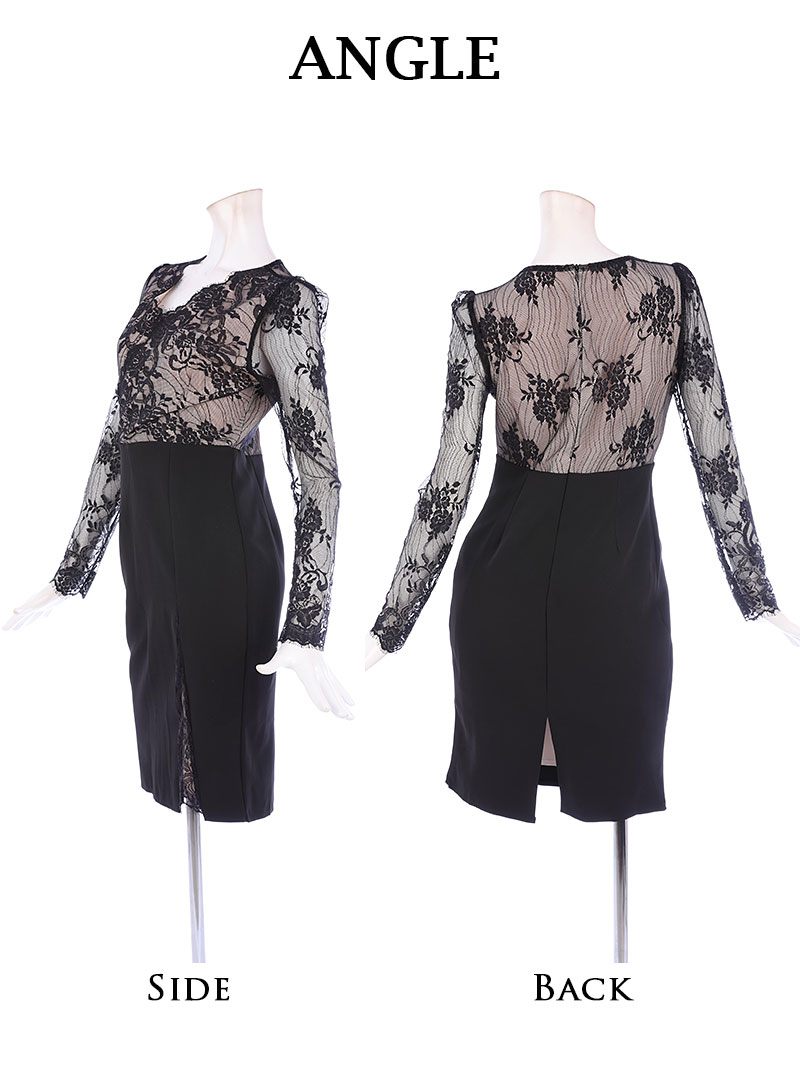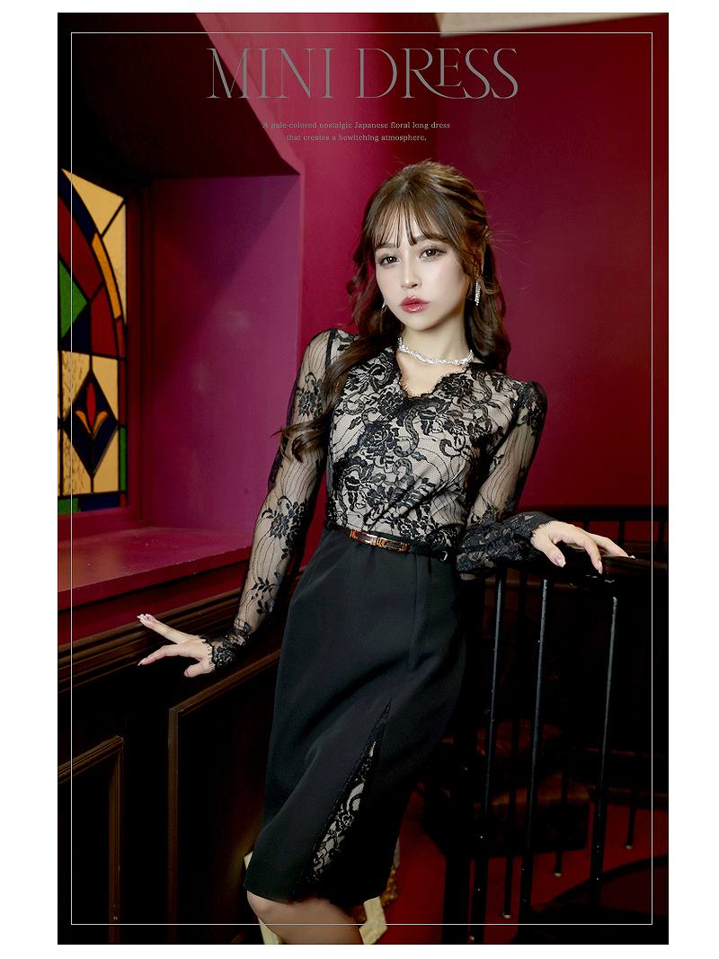 キャバ ドレス キャバドレス ミニドレス ミニ キャバクラドレス キャバクラ パーティードレス セクシー 韓国ドレス 韓国 レース レース袖 長袖 フォーマル ヌーディー 裾レース レーススリット 大人カシュクール お呼ばれ お出かけ Ryuyu れいぽよ あす楽 送料無料