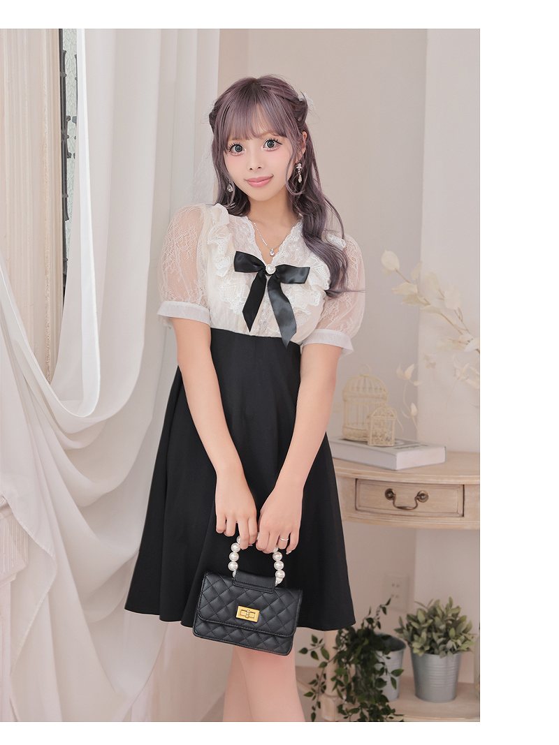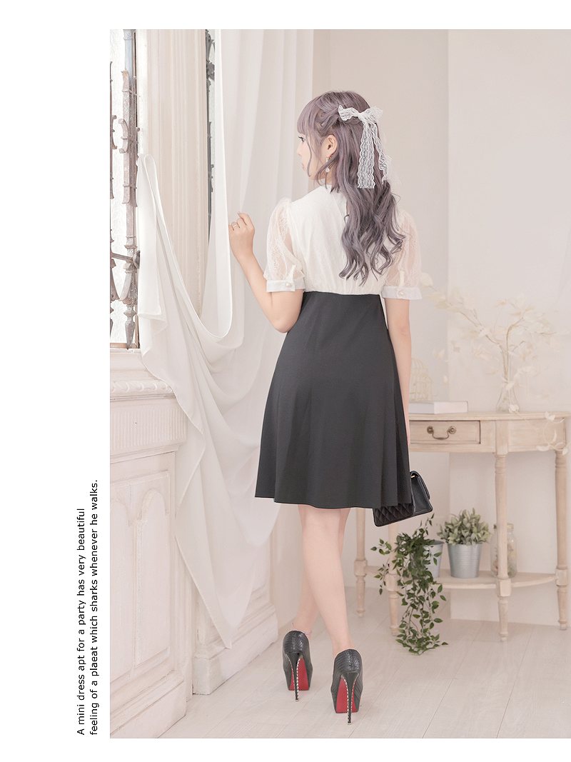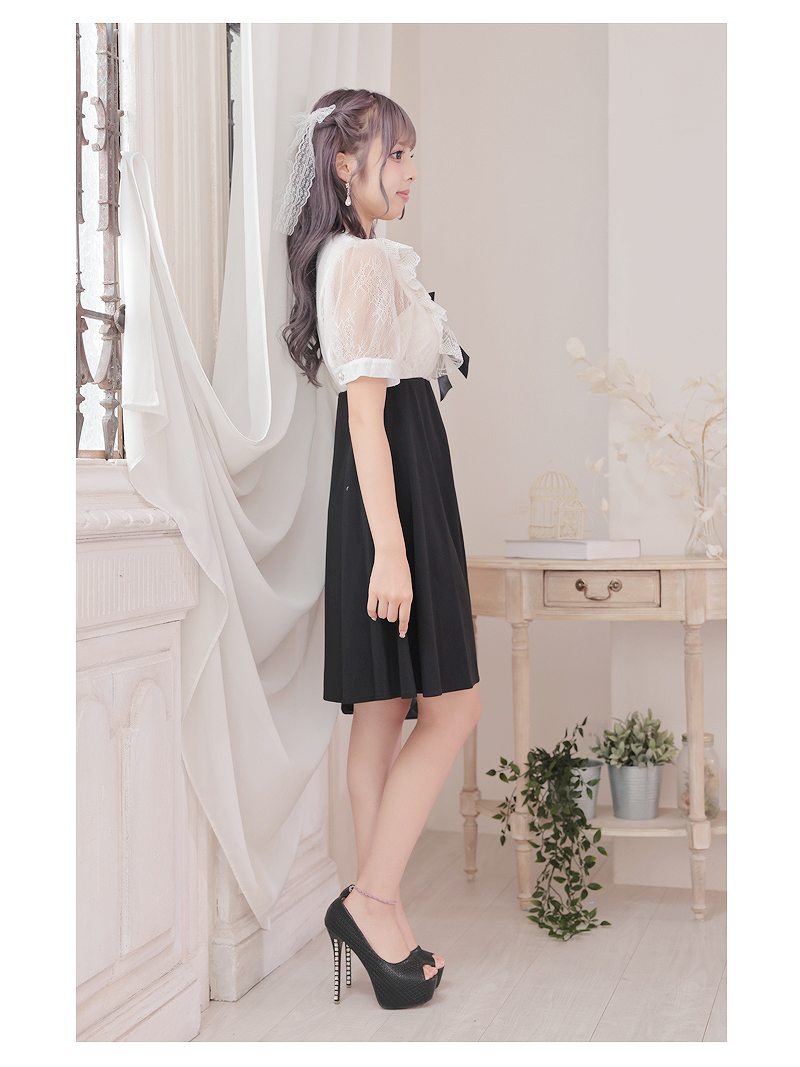キャバ ドレス キャバドレス ミニドレス ミニ キャバクラドレス キャバクラ パーティードレス セクシー 韓国ドレス 韓国 レース リボン フレア 袖つき 結婚式 パーティードレス 半袖 かわいい リボン プチプラ RyuyuChick あいさ 大きいサイズ 可愛い あす楽 送料無料