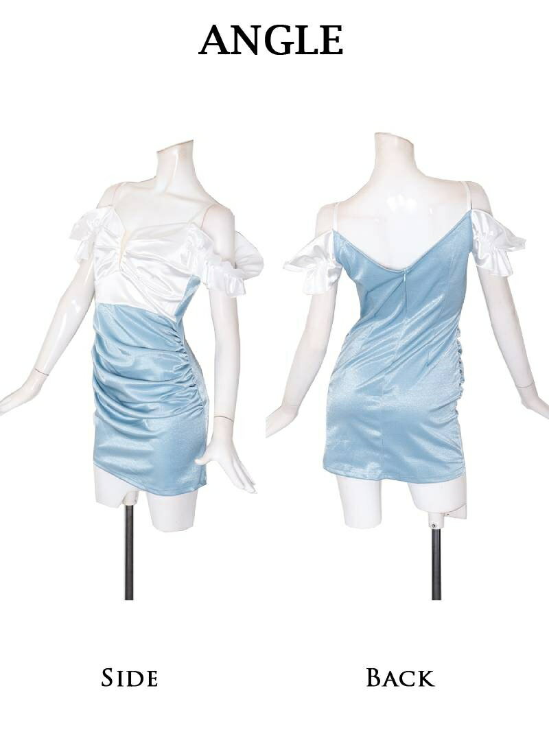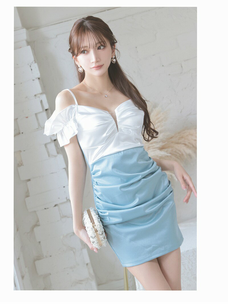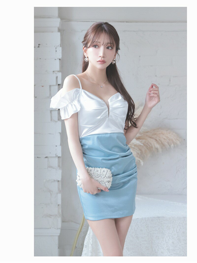 【メール便対応】キャバ ドレス キャバドレス ミニドレス ミニ キャバクラドレス パーティードレス セクシー 韓国ドレス ラメ キラキラ 谷間 オフショル タイト バイカラー 脚長 二の腕隠せる パール つやつや Ryuyu 大きいサイズ 可愛い きれいめ 膝丈 あす楽 送料無料
