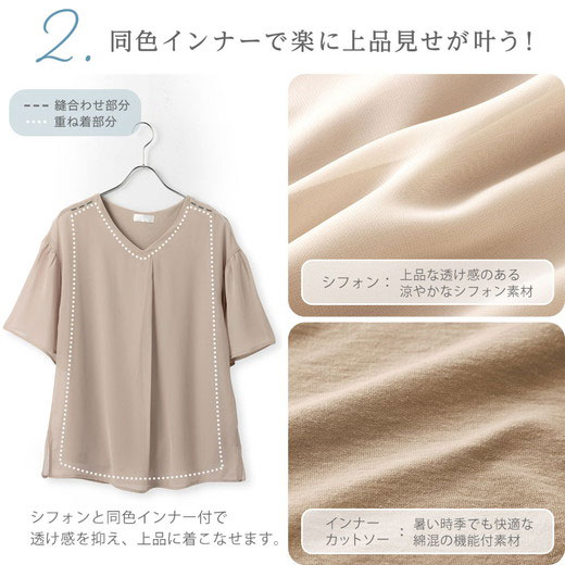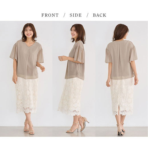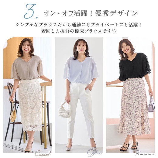 Alotta(アロッタ)【WEB限定】ブラウス 接触冷感 【5つの機能付】インナー付フレアー袖タックブラウス(M~5L) 30代 40代 夏 レディース トップス ひんやり