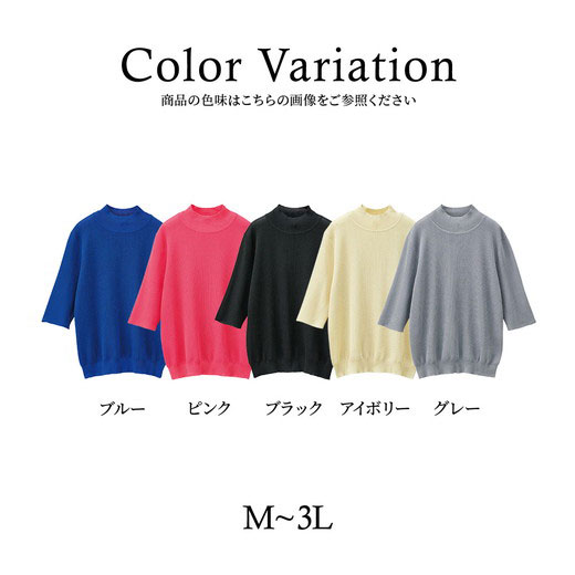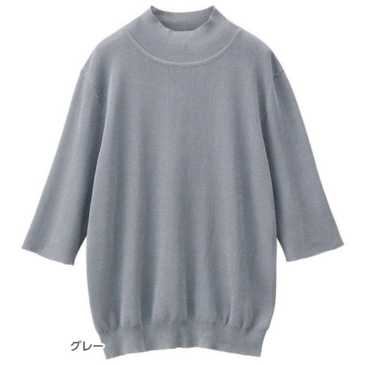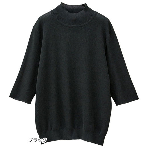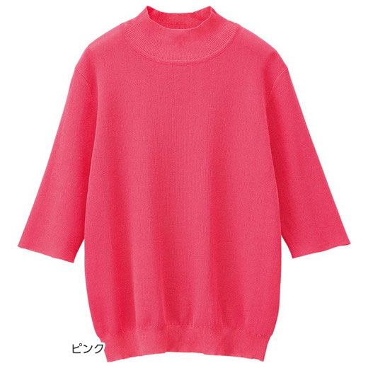 【MAX20%OFFクーポン配布中! 11日13:59迄】ニットプルオーバー ひんやり!ハイネック5分袖サマーニット(M〜3L) ryuryu リュリュ レディース ファッション ラナン RANAN 夏 夏服 ニット トップス 接触冷感 体型カバー