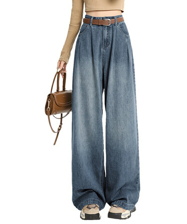デニム パンツ デニムパンツ レディース ワイドパンツ 大きいサイズ ジーンズ ジーパン 体型カバー ボトムス ウォッシュ加工 レトロ 体型カバー ゆったり ハイウエスト ストレッチ 春 夏 秋 冬 ヴィンテージ denim XS S M L XL SEU seu24fb2015