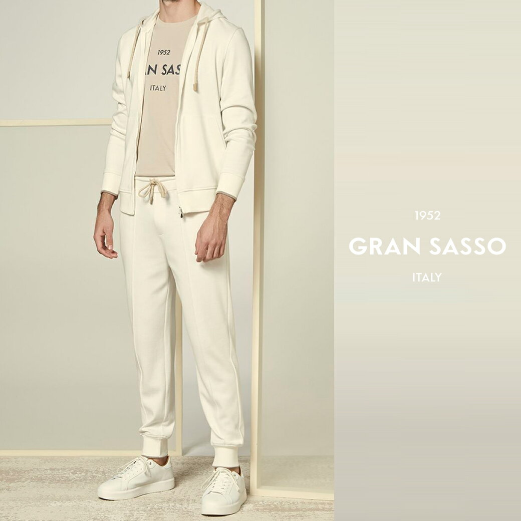 【SALE】 グランサッソ GRAN SASSO SARTORIAL コットンニット セットアップ ジムスーツ スウェット ジップアップパーカー パンツ 春夏 メンズ アイボリー ネイビー 2色展開 イタリア ブランド MADE IN ITALY