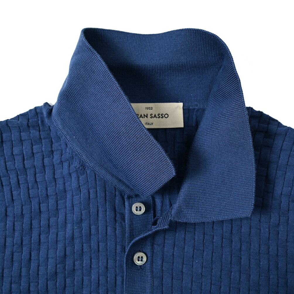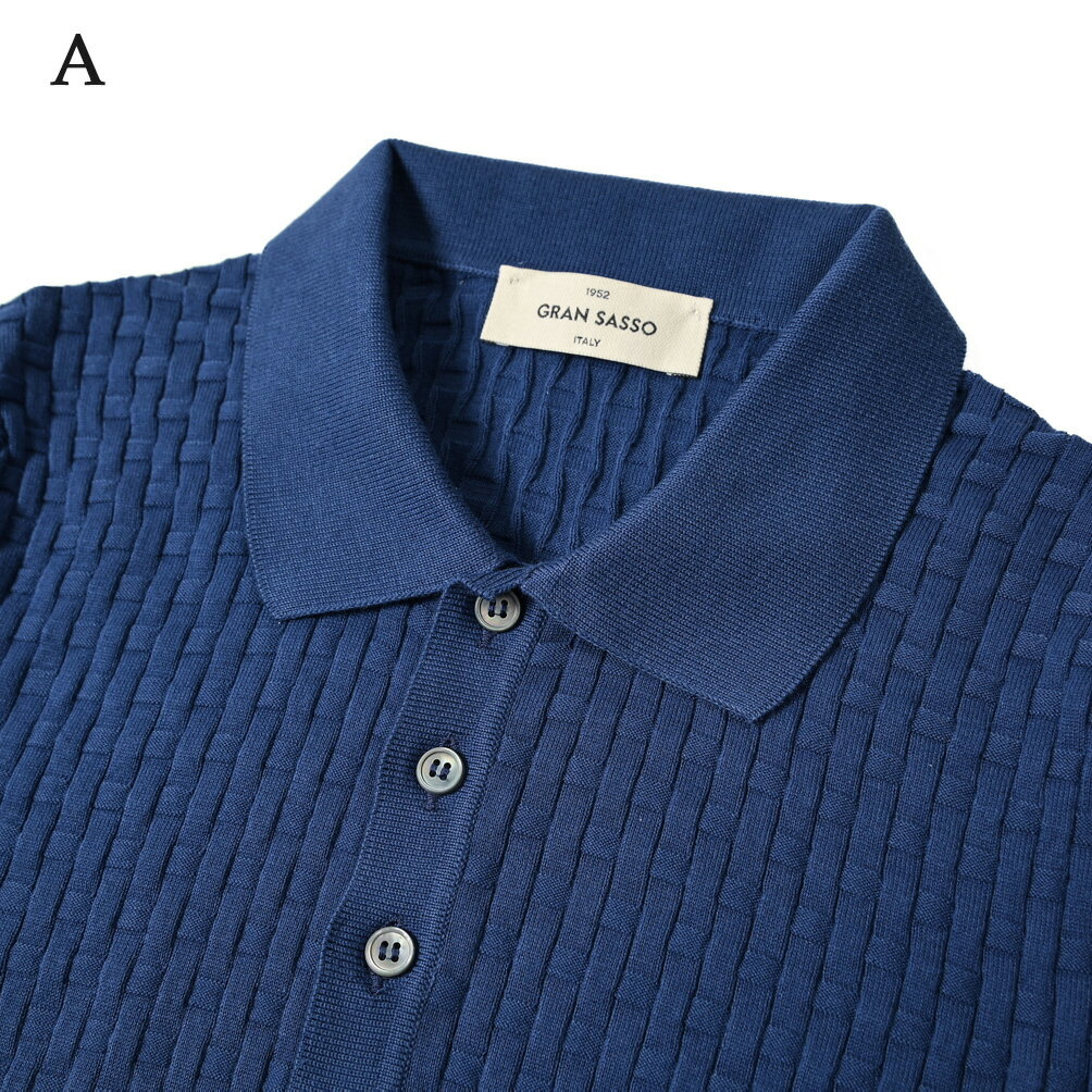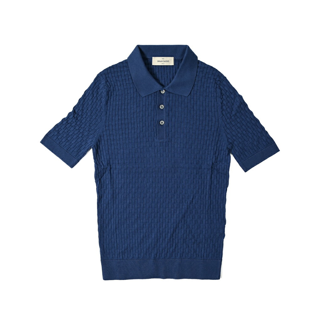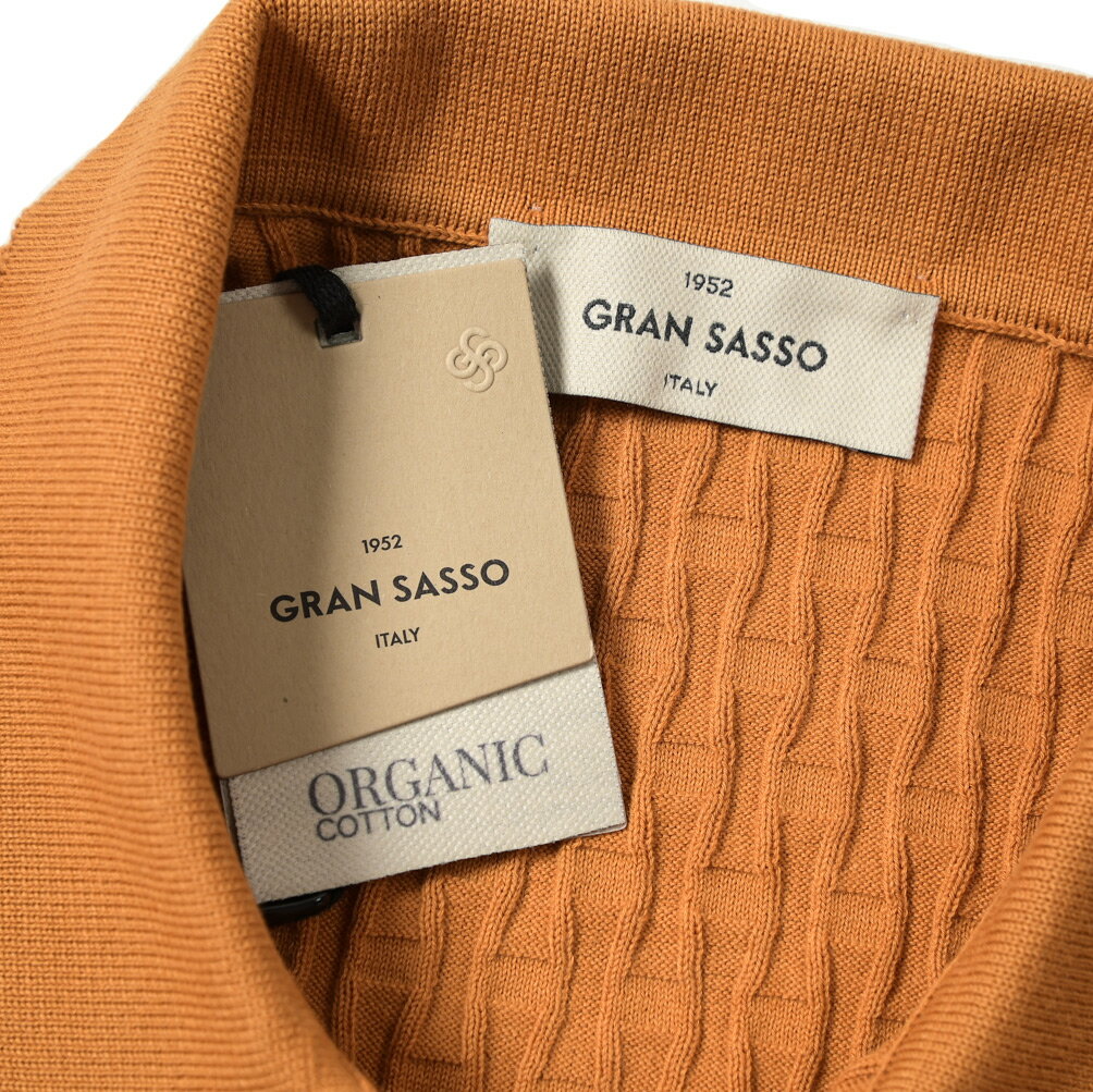 【SALE】 グランサッソ GRAN SASSO ORGANIC COTTON オーガニックコットン ニットポロシャツ ドレスポロ 半袖 春夏 メンズ コットン100% ブルー オレンジ 2色展開 織柄 イタリア ブランド MADE IN ITALY