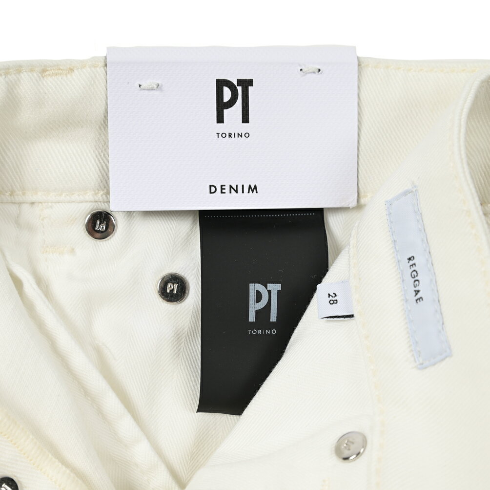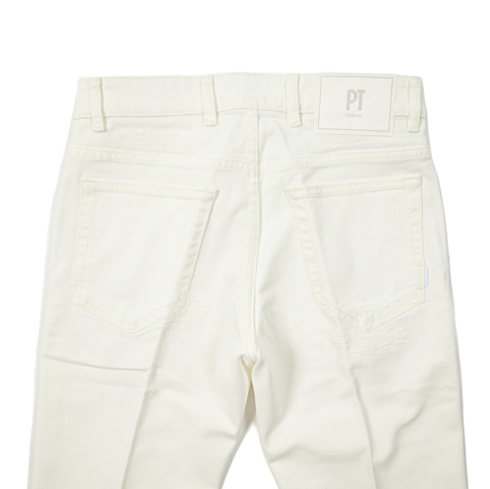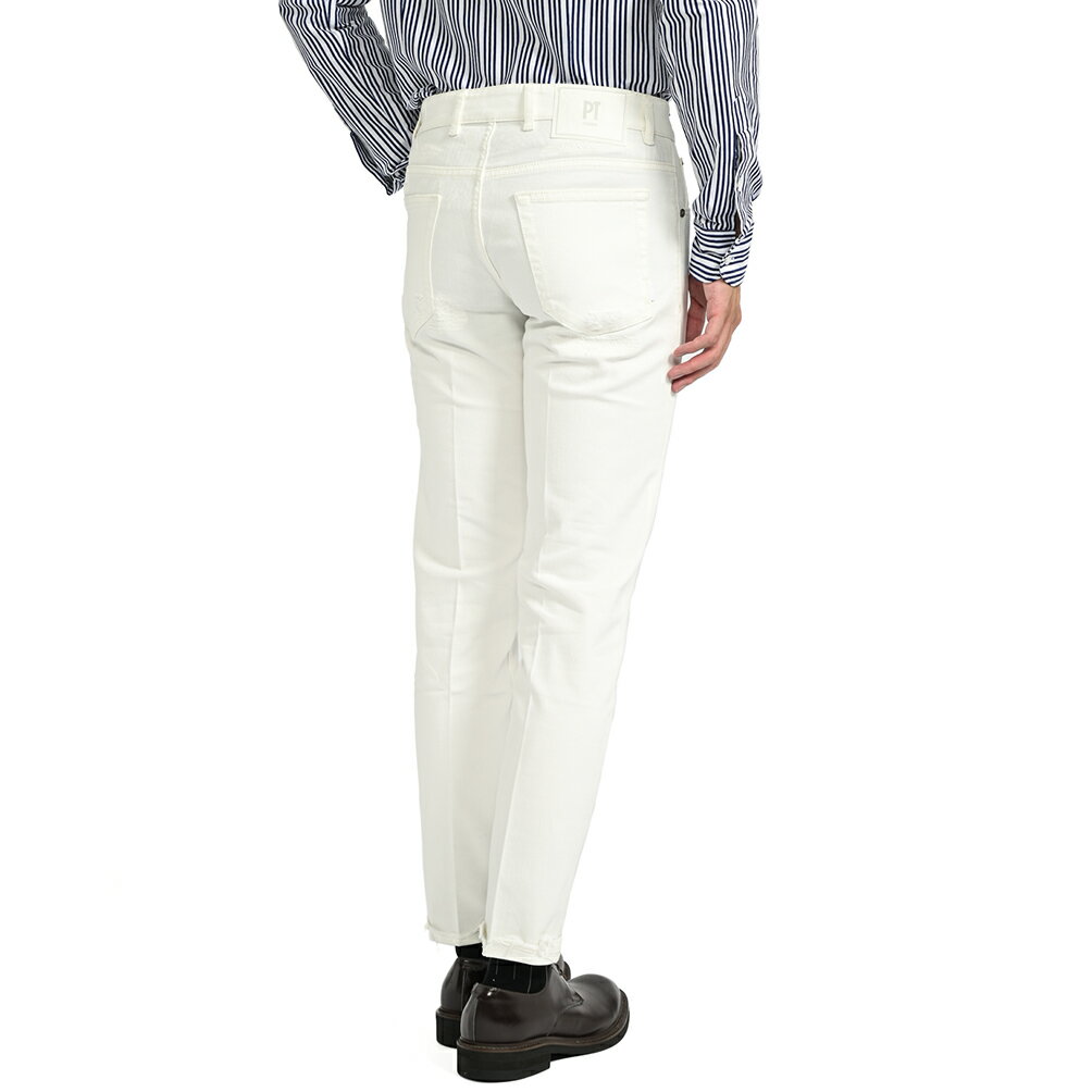 【Winter SALE】 ピーティートリノ デニム PT TORINO DENIM REGGAE レゲエ TAPERED FIT デニム ジーンズ ストレッチ パンツ クラッシュ ダメージ加工 メンズ ホワイト イタリア ブランド PT05