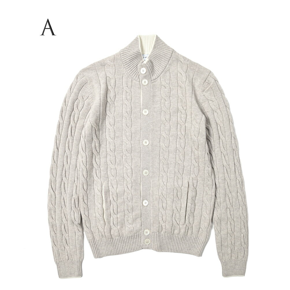 【SALE】 グランサッソ GRAN SASSO ニットカーディガン ケーブル編み スタンドカラーブルゾン ミドルゲージ 長袖 秋冬 メンズ ヴァージンウール カシミヤ 4色展開 イタリア ブランド MADE IN ITALY 大きいサイズ