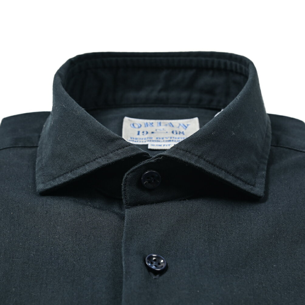 【半額以下】 オリアン ORIAN DENIM DIVISION ドレスシャツ カジュアルシャツ ホリゾンタルカラー 長袖 メンズ Slim Fit スリムフィット コットンツイル ネイビー カーキ 2色展開 イタリア ブランド