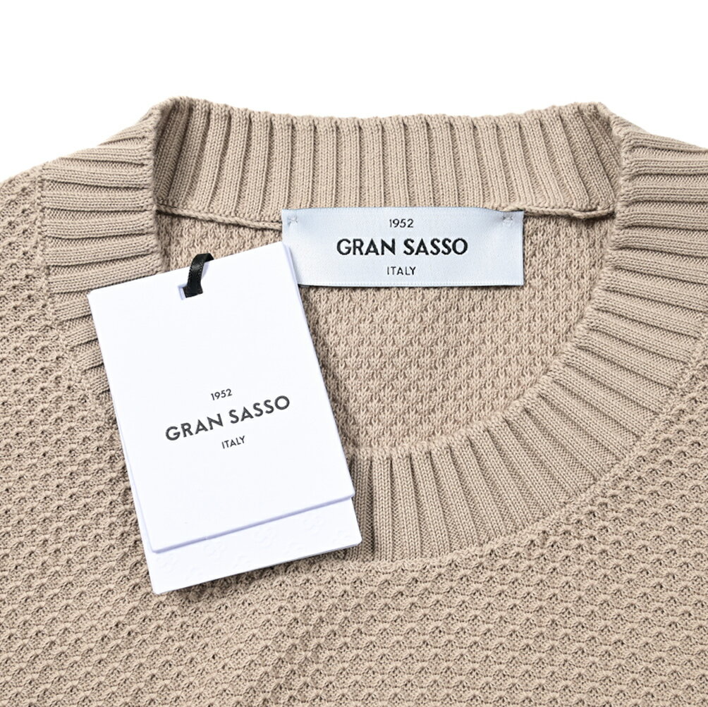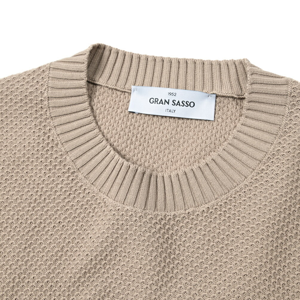 【半額以下】 グランサッソ GRAN SASSO 【2024年 春夏新作】 ORGANIC COTTON オーガニックコットン ワッフル サマーニットセーター クルーネック ハイゲージ 長袖 春夏 メンズ GOTS認証コットン ベージュ イタリア ブランド MADE IN ITALY