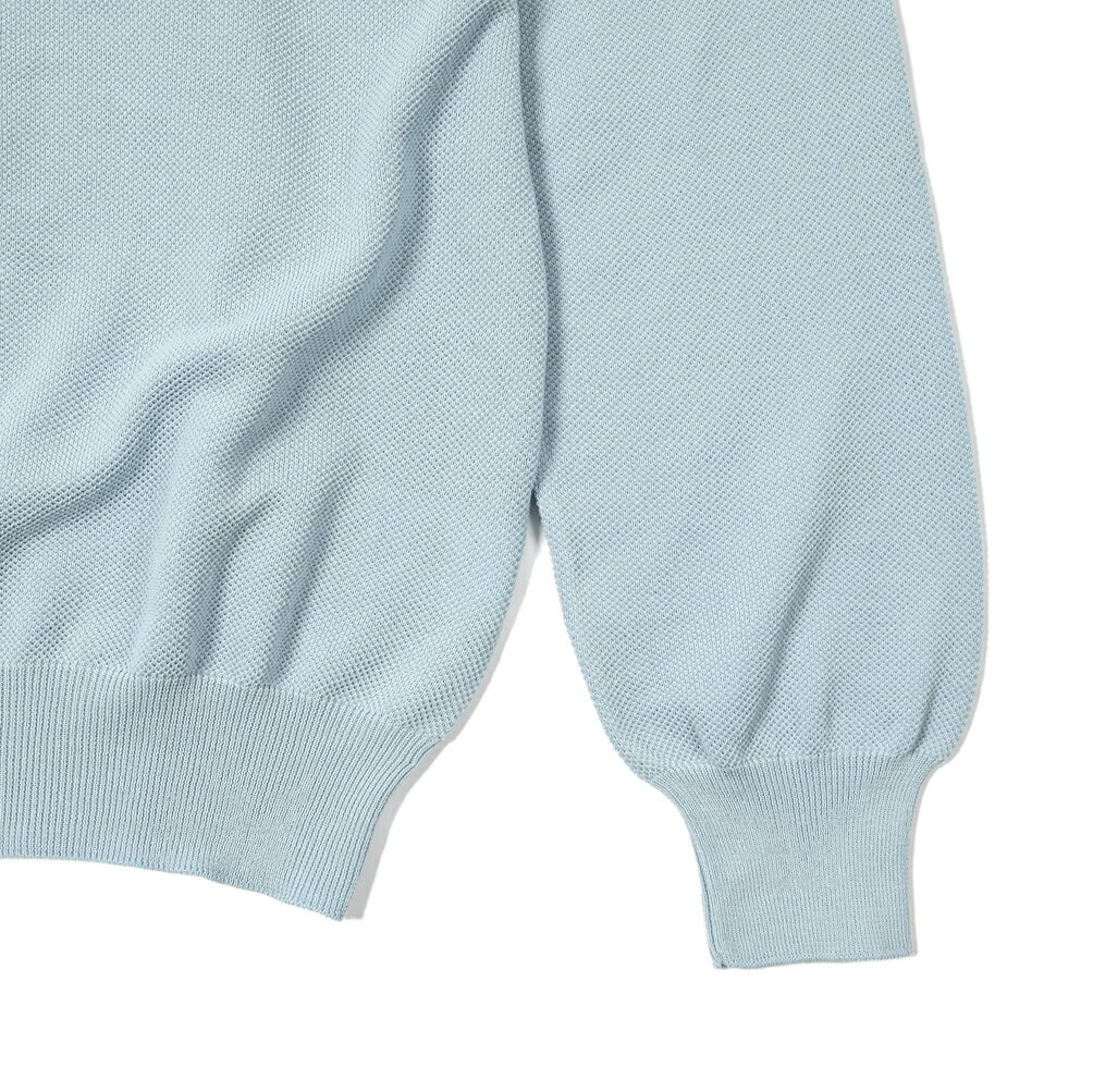 【半額以下】 グランサッソ GRAN SASSO 【2024年 春夏新作】 FRESH COTTON フレッシュコットン ピケステッチ サマーニットセーター クルーネック ハイゲージ 長袖 春夏 メンズ 鹿の子編み ブルー イタリア ブランド MADE IN ITALY
