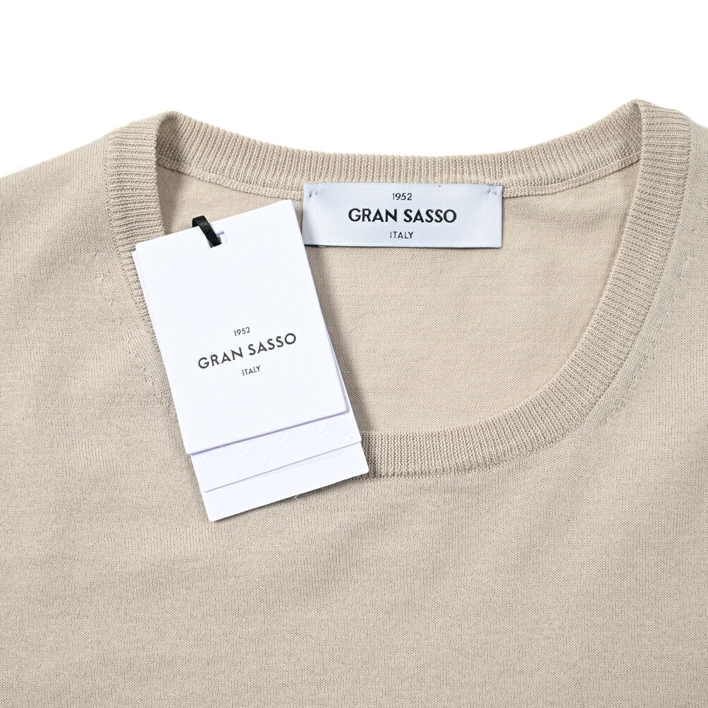 【半額以下】 グランサッソ GRAN SASSO ULTRALIGHT FRESH COTTON フレッシュコットン サマーニットTシャツ クルーネック ハイゲージ 半袖 春夏 メンズ コットン 100% ベージュ イタリア ブランド MADE IN ITALY