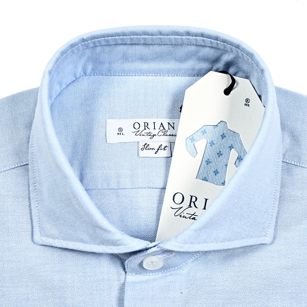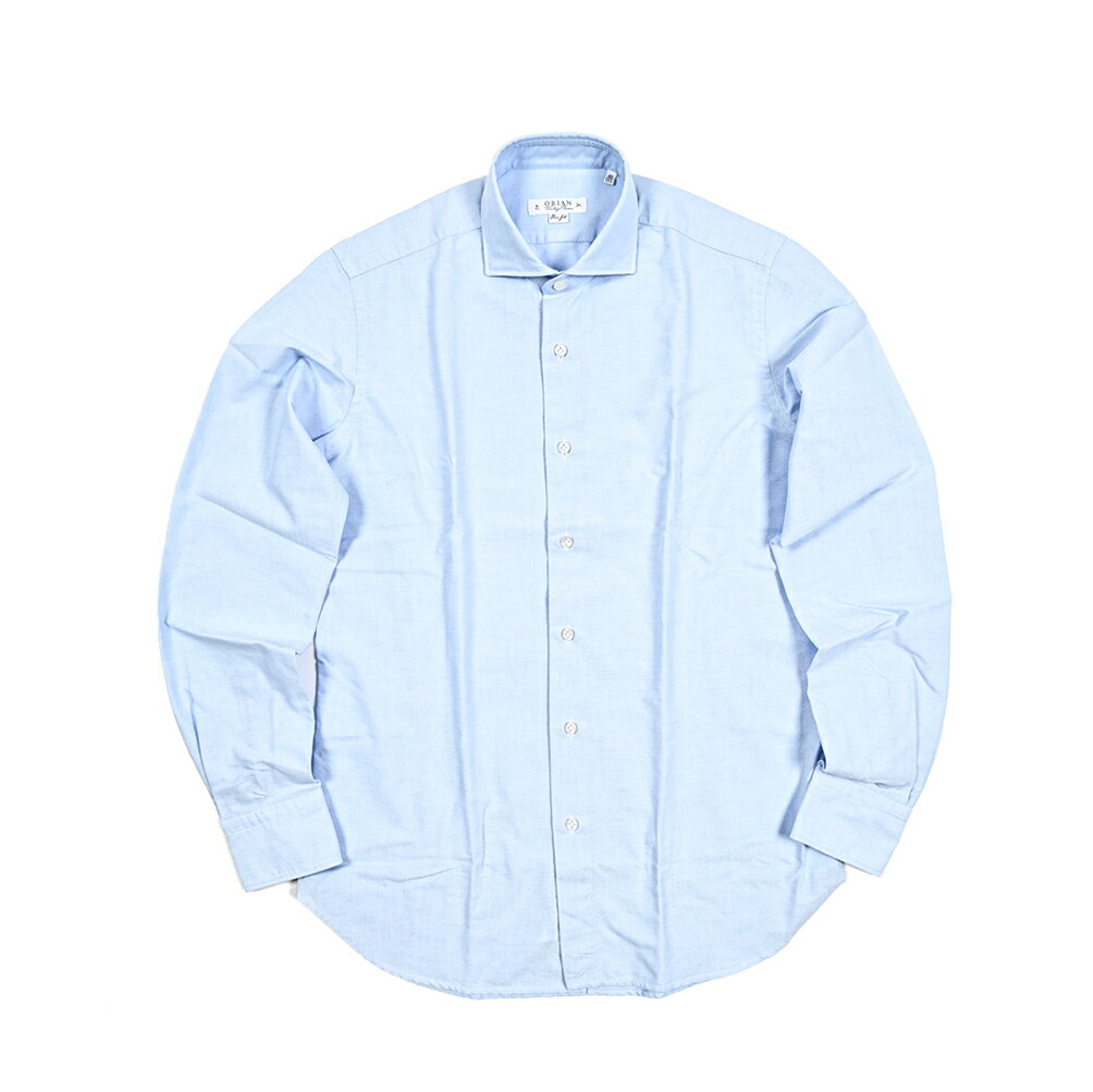 《新春初売り》【半額以下】 オリアン ORIAN 【2024-25年 秋冬新作】 Vintage Classic SLIM FIT ドレスシャツ ホリゾンタルカラー 長袖 メンズ コットン 100% ライトブルー イタリア ブランド