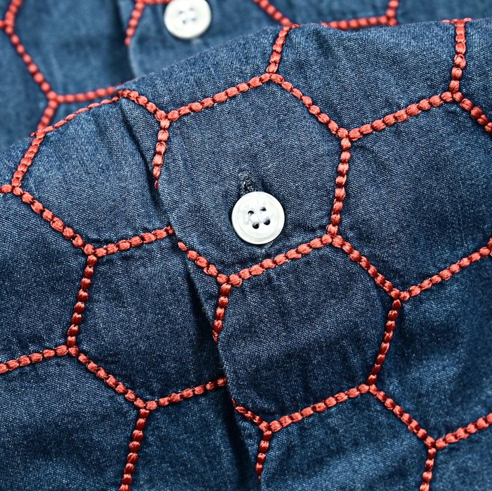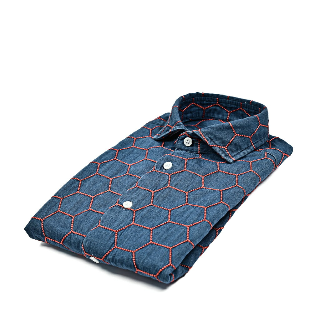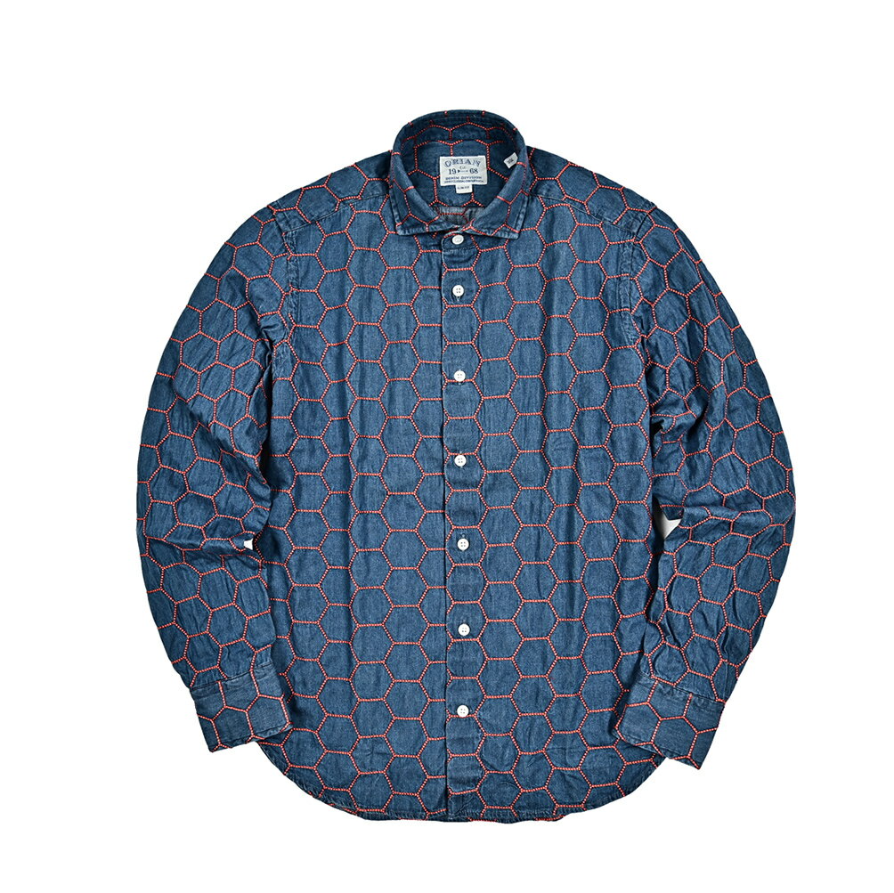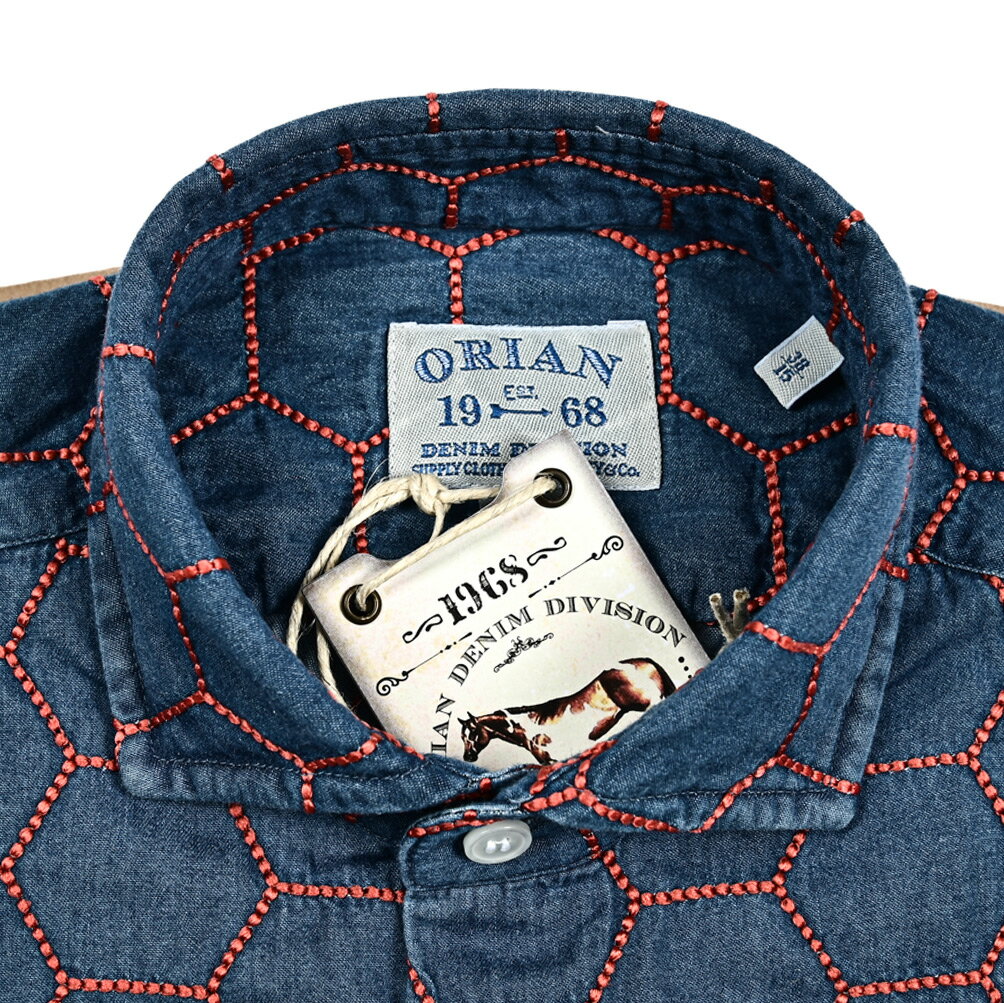 《新春初売り》【P20倍】 オリアン ORIAN 【2024-25年 秋冬新作】 DENIM DIVISION SLIM FIT デニムシャツ ドレスシャツ ホリゾンタルカラー 長袖 メンズ コットン 100% ハニカム刺繍 インディゴブルー イタリア ブランド