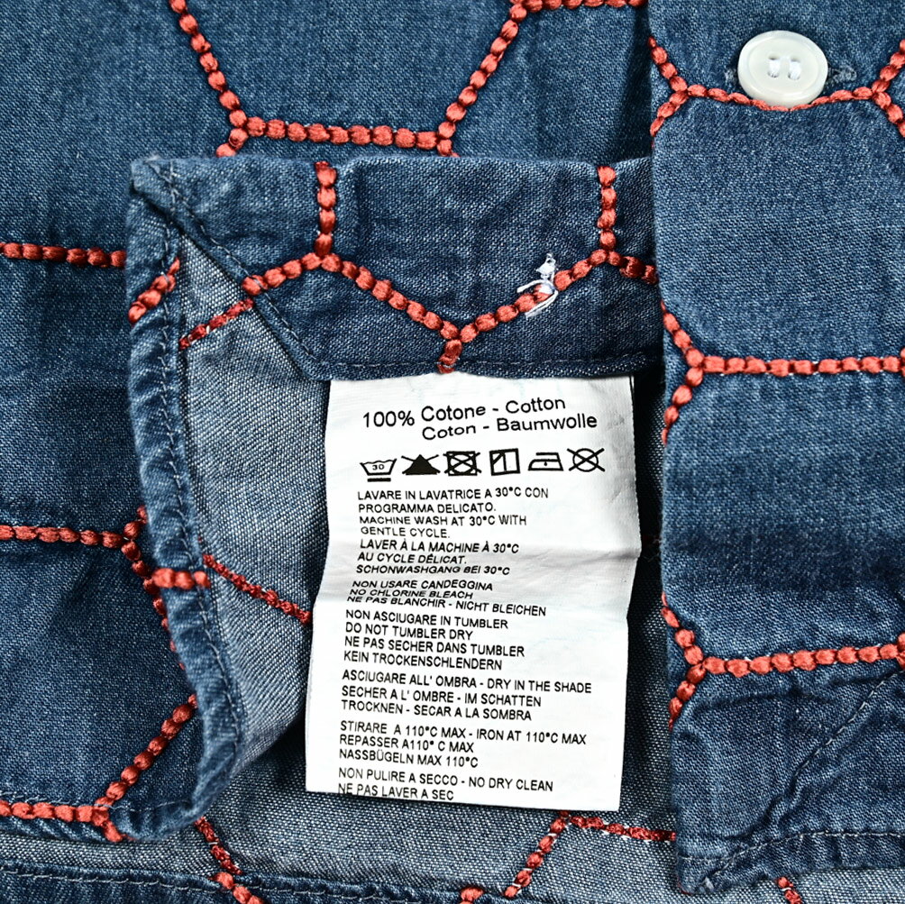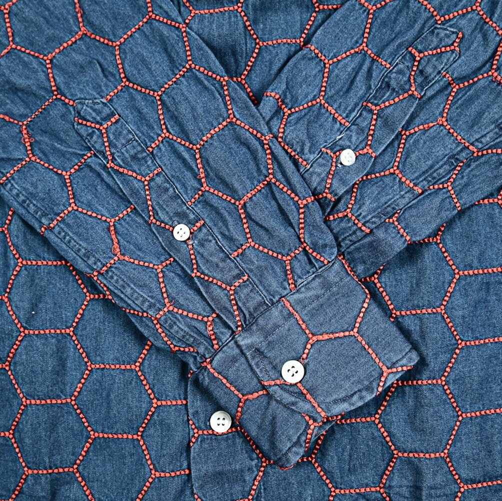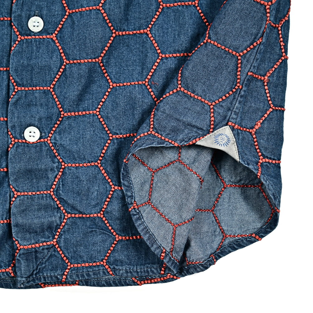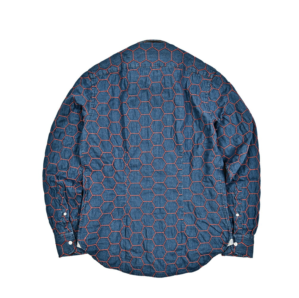 《新春初売り》【P20倍】 オリアン ORIAN 【2024-25年 秋冬新作】 DENIM DIVISION SLIM FIT デニムシャツ ドレスシャツ ホリゾンタルカラー 長袖 メンズ コットン 100% ハニカム刺繍 インディゴブルー イタリア ブランド
