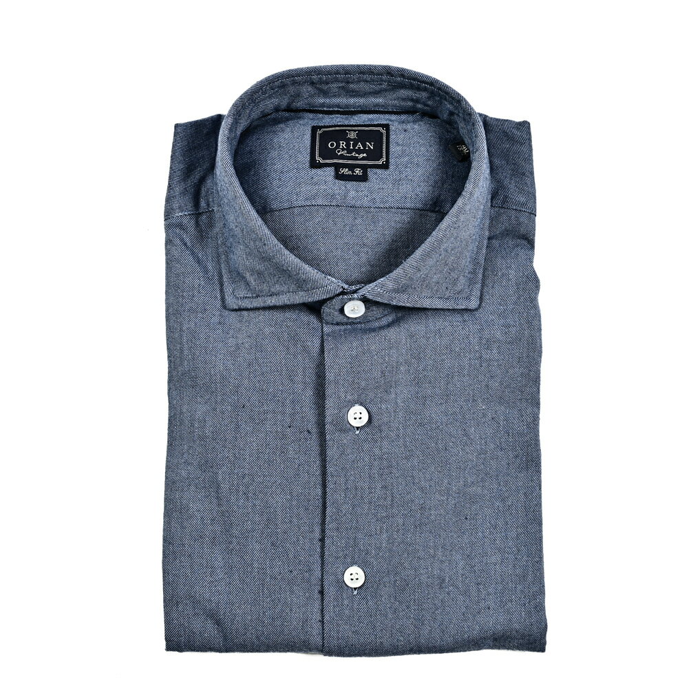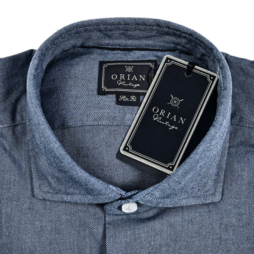 《新春初売り》【半額以下】 オリアン ORIAN 【2024-25年 秋冬新作】 Vintage ヴィンテージ ドレスシャツ ホリゾンタルカラー 長袖 オールシーズン メンズ Slim Fit スリムフィット コットン 100% ブルー イタリア ブランド