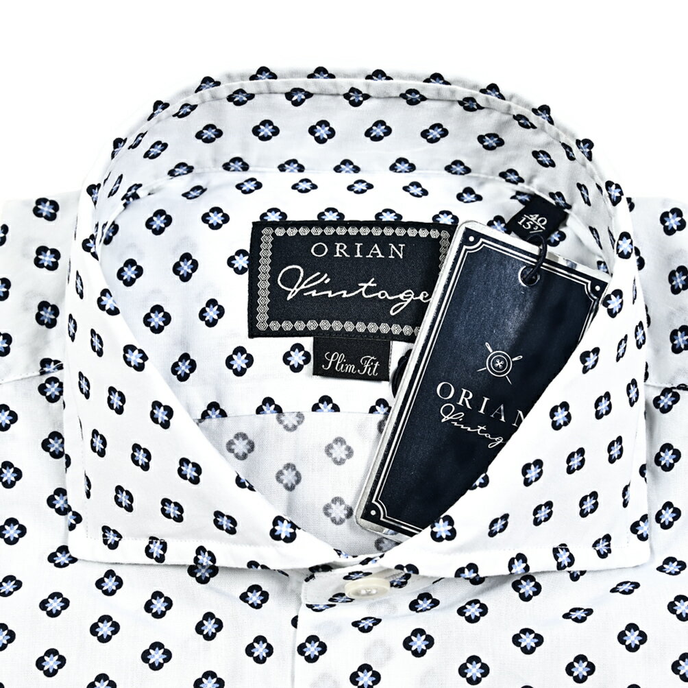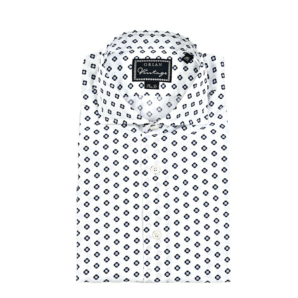 【Winter SALE】【P20倍】 オリアン ORIAN 【2024-25年 秋冬新作】 Vintage ヴィンテージ ドレスシャツ ホリゾンタルカラー 長袖 オールシーズン メンズ Slim Fit スリムフィット コットン 100% 小花柄 ホワイト イタリア ブランド