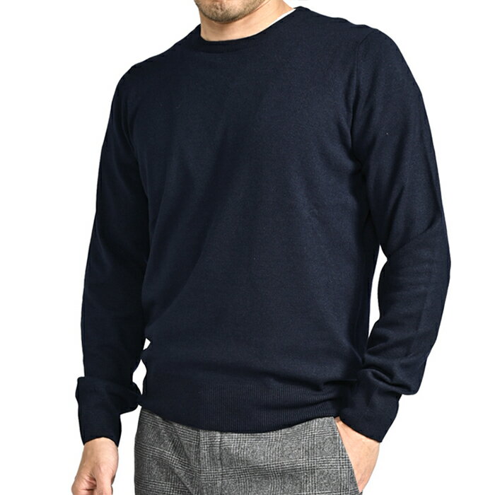 【Winter SALE】【半額以下】 グランサッソ GRAN SASSO カシミヤ混 ニットセーター クルーネック ハイゲージ 長袖 秋冬 春 3シーズン メンズ ウール ビスコース カシミヤ ダークネイビー イタリア ブランド MADE IN ITALY