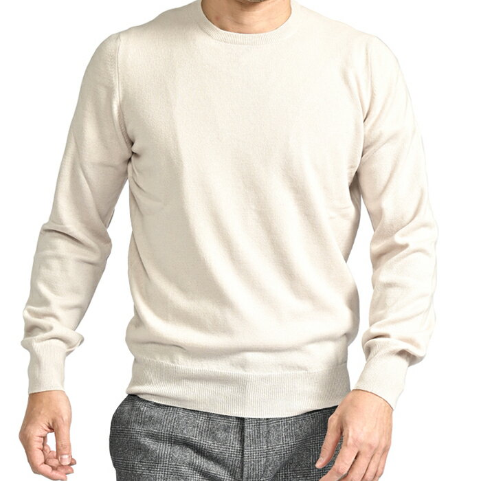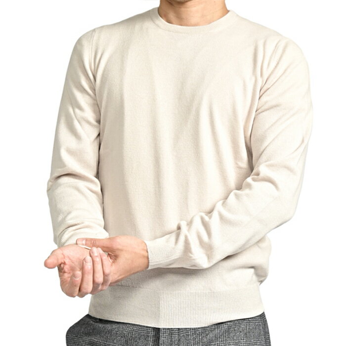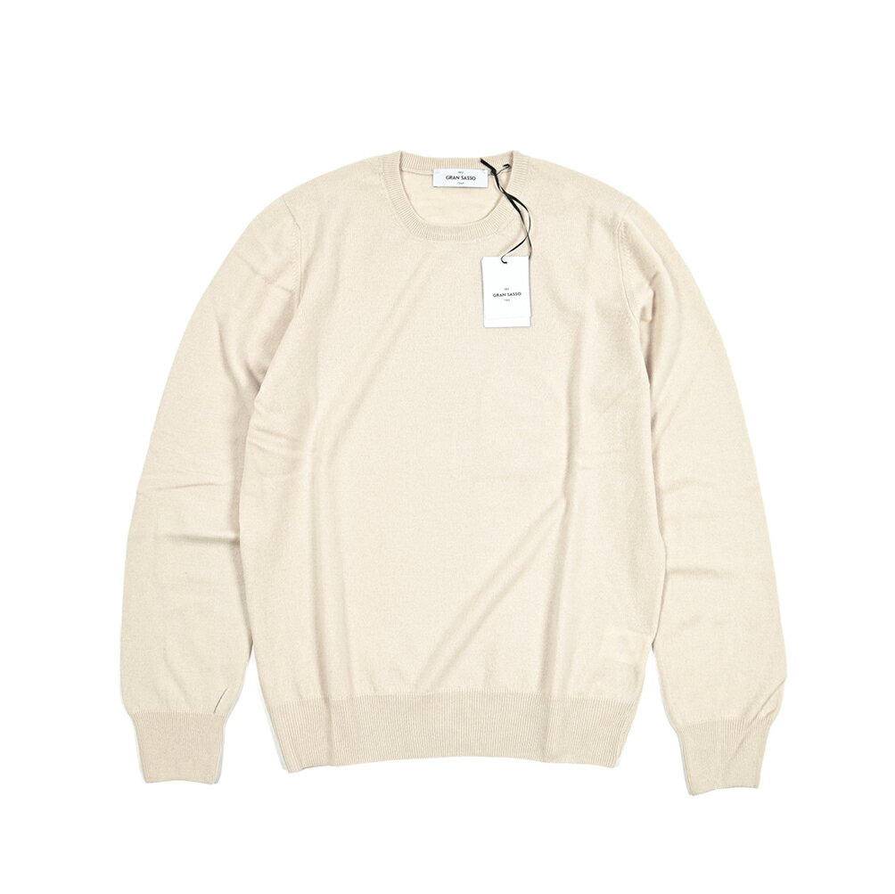 【スーパーSALE】【半額以下】 グランサッソ GRAN SASSO カシミヤ混 ニットセーター クルーネック ハイゲージ 長袖 秋冬 春 3シーズン メンズ ウール ビスコース カシミヤ ライトベージュ イタリア ブランド MADE IN ITALY