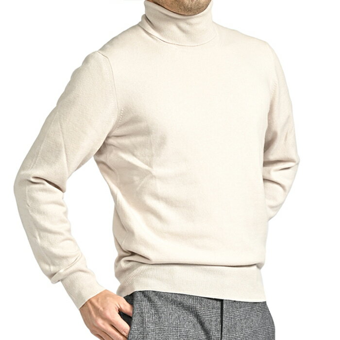 【Winter SALE】【半額以下】 グランサッソ GRAN SASSO カシミヤ混 ニットセーター タートルネック ハイゲージ 長袖 秋冬 春 3シーズン メンズ ウール ビスコース カシミヤ ライトベージュ イタリア ブランド MADE IN ITALY