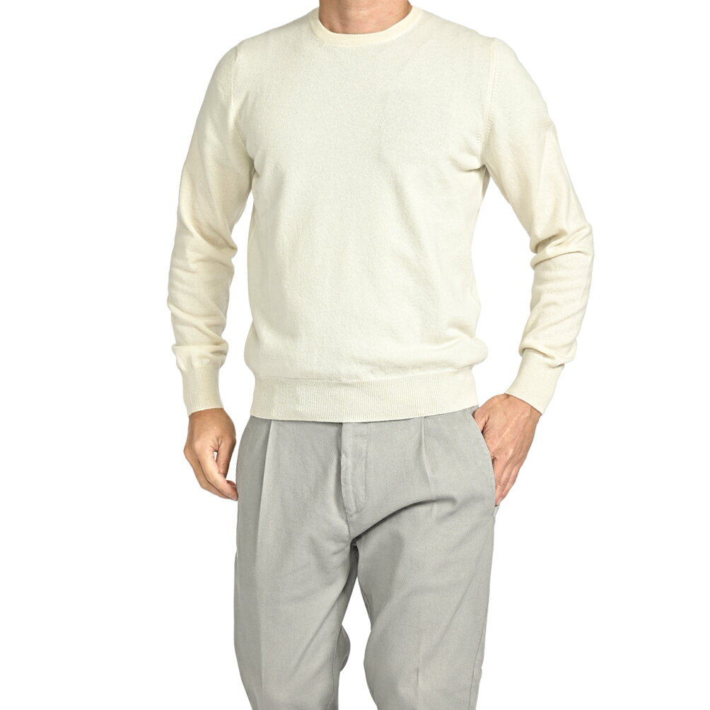 【Winter SALE】【半額以下】【60%OFF】 グランサッソ GRAN SASSO CASHMERE カシミヤ100% ニットセーター クルーネック ハイゲージ 長袖 秋冬 春 3シーズン メンズ オフホワイト グリーン イタリア ブランド MADE IN ITALY