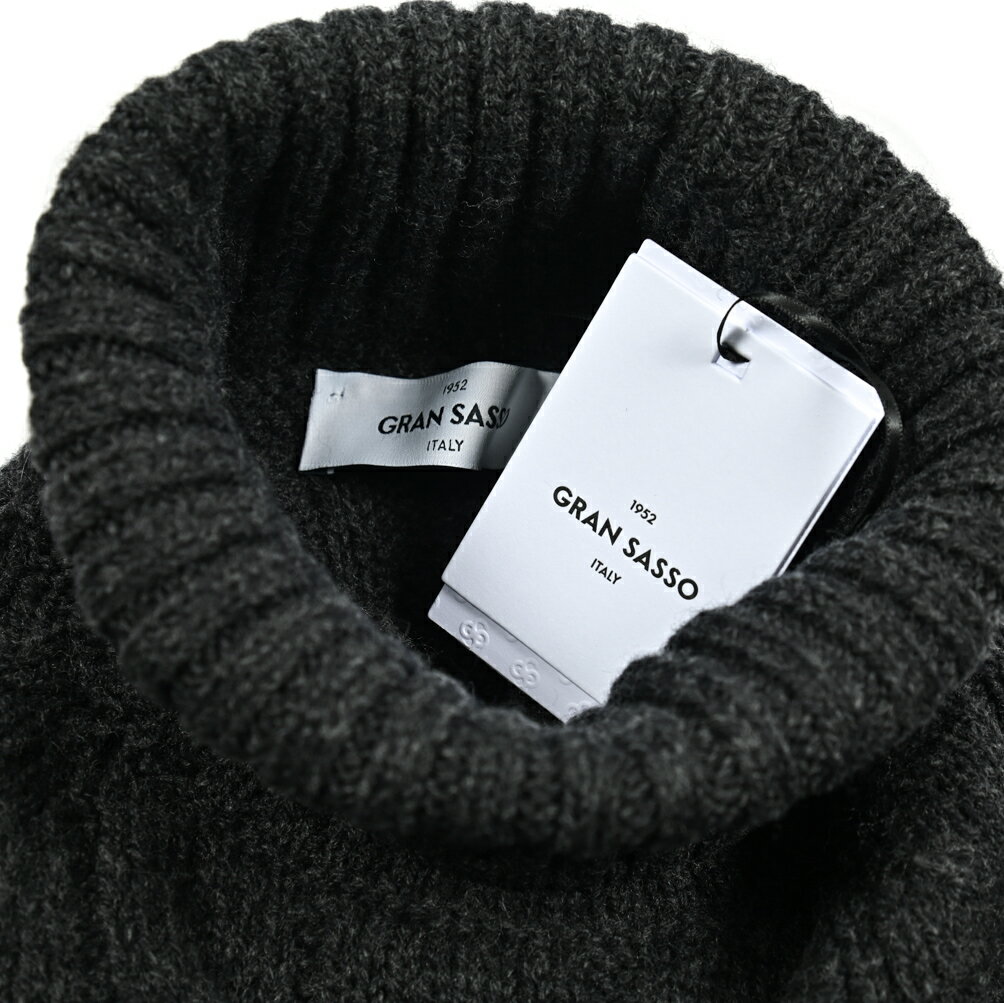 【スーパーSALE】【半額以下】 グランサッソ GRAN SASSO ケーブル編み ニットセーター タートルネック ミドルゲージ 長袖 秋冬 メンズ ヴァージンウール 100% グレー イタリア ブランド MADE IN ITALY