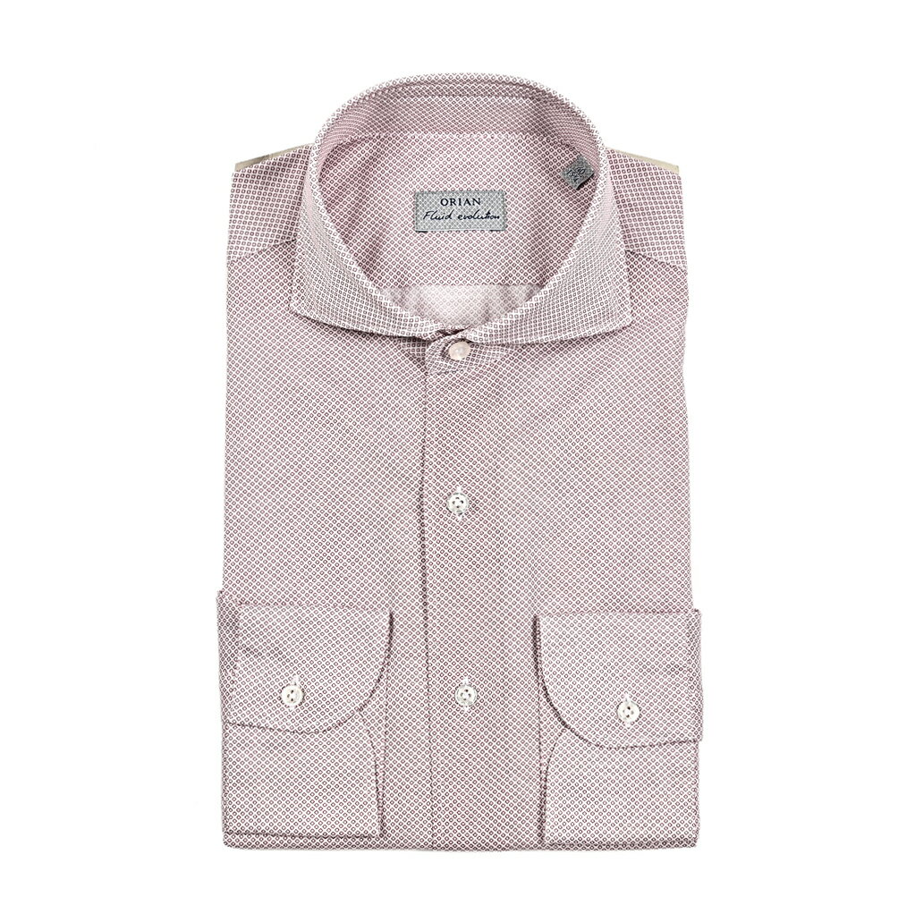 【半額以下】 オリアン ORIAN Fluid evolution ジャージー ナチュラルストレッチ ドレスシャツ ホリゾンタルカラー 長袖 メンズ Slim Fit スリムフィット コットン 100% レッド イタリア ブランド