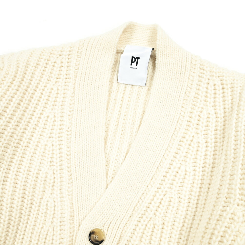 《冬セール》【半額以下】【P10倍】 ピーティートリノ PT TORINO ニットカーディガン Vネック ミドルゲージ 長袖 秋冬 メンズ ウール アルパカ アクリル リブ編み ホワイト イタリア ブランド PT01 MADE IN ITALY