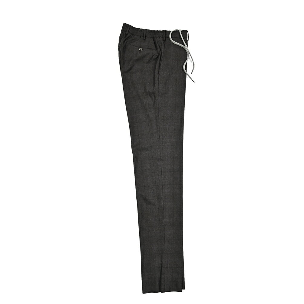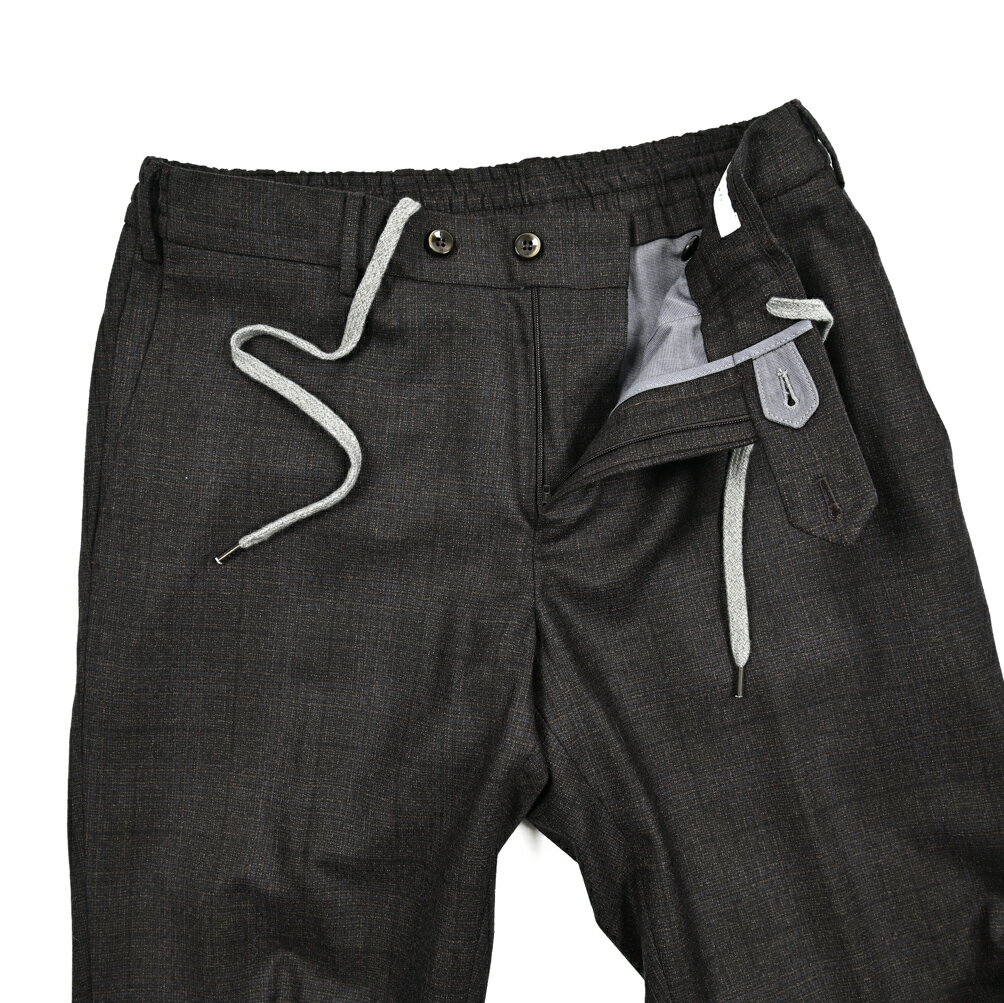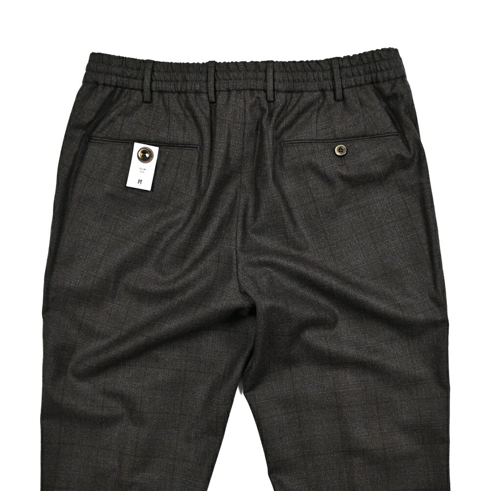 《冬セール》【半額以下】 ピーティートリノ PT TORINO SLIM FIT スリムフィット スラックス ノータック ドローコード ストレッチパンツ 秋冬 メンズ ヴァージンウール グレンチェック ダークブラウン イタリア ブランド PT01