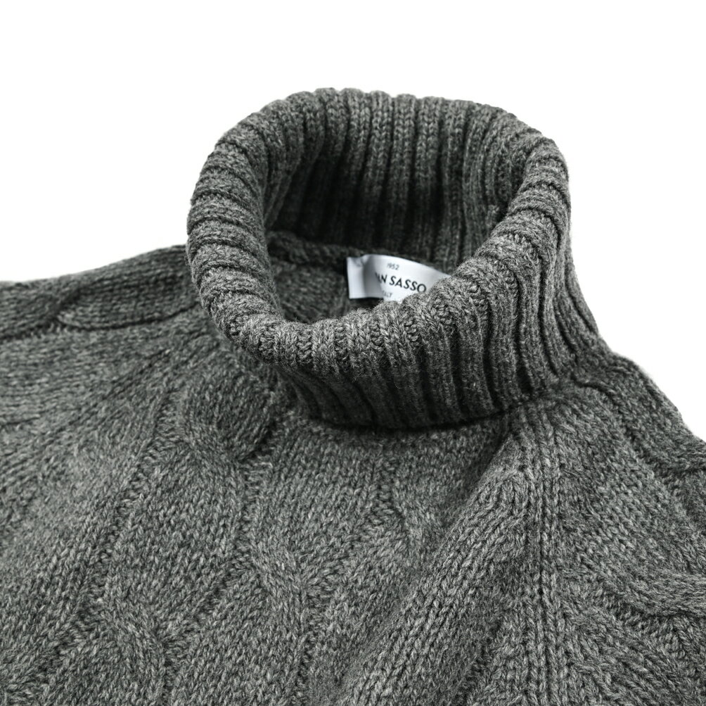 【半額以下】 グランサッソ GRAN SASSO ケーブル編み ニットセーター タートルネック ミドルゲージ 長袖 秋冬 メンズ ヴァージンウール 100% グレー イタリア ブランド MADE IN ITALY
