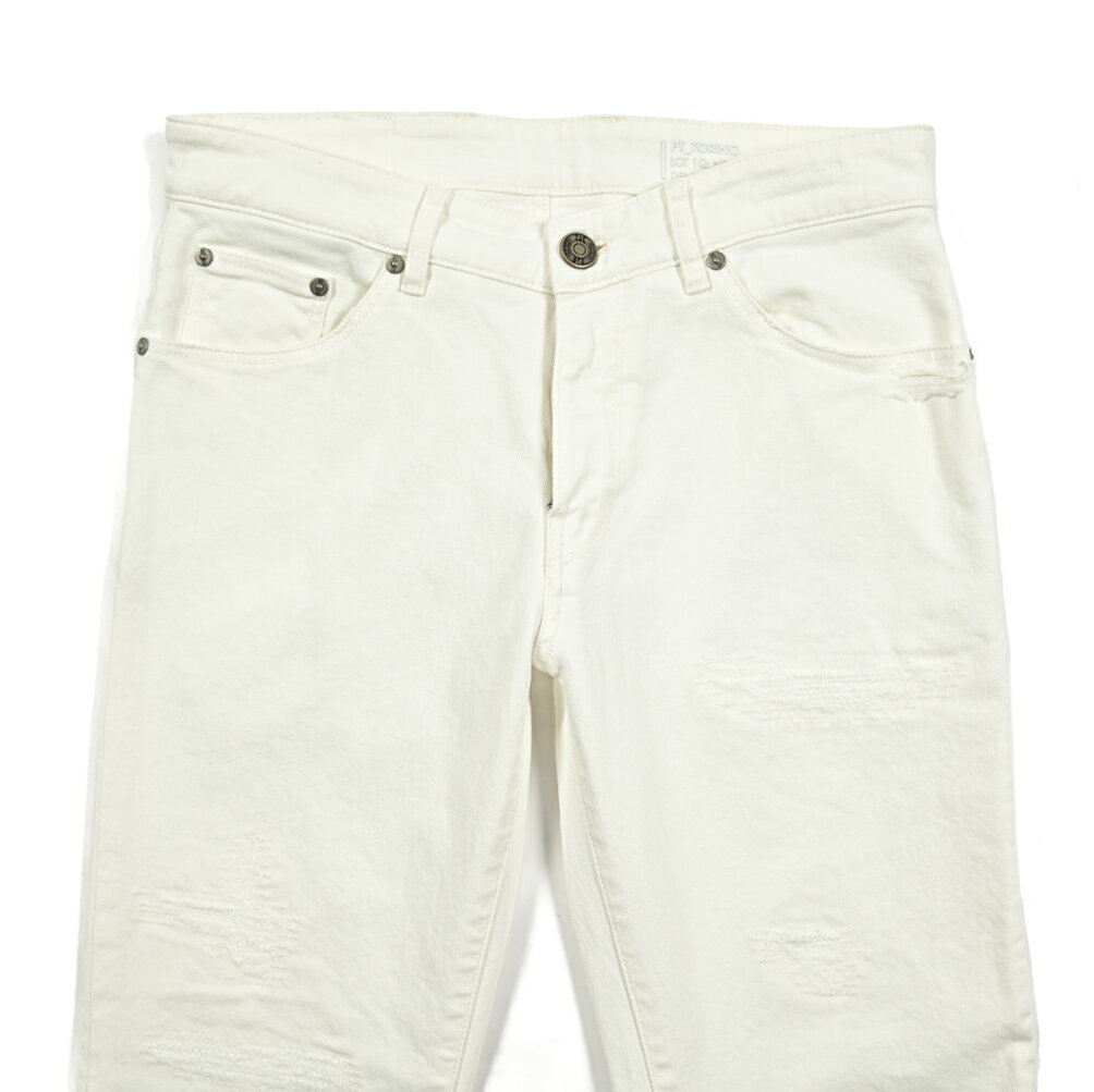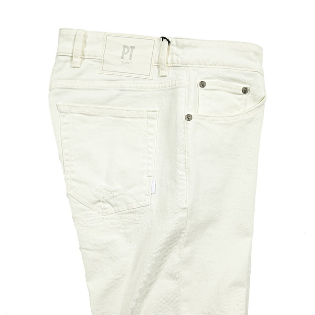 【SALE】 ピーティートリノ デニム PT TORINO DENIM SWING スウィング SUPERSLIM FIT ホワイト デニム ジーンズ クラッシュ ダメージ加工 ストレッチパンツ スリム メンズ コットン ホワイト 白 イタリア ブランド PT05