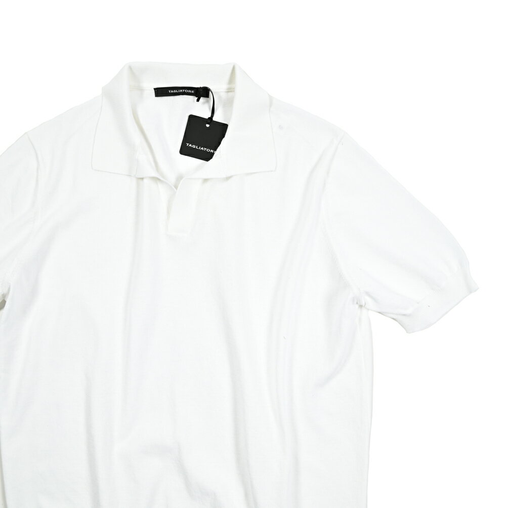 【半額以下】 タリアトーレ TAGLIATORE 【2025年 春夏新作】 スキッパー 半袖ニットポロシャツ ハイゲージ 春夏 メンズ コットン100% ホワイト イタリア ブランド MADE IN ITALY