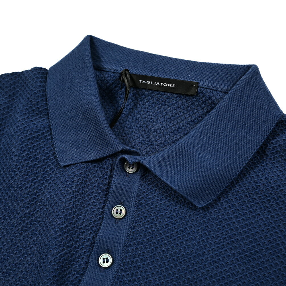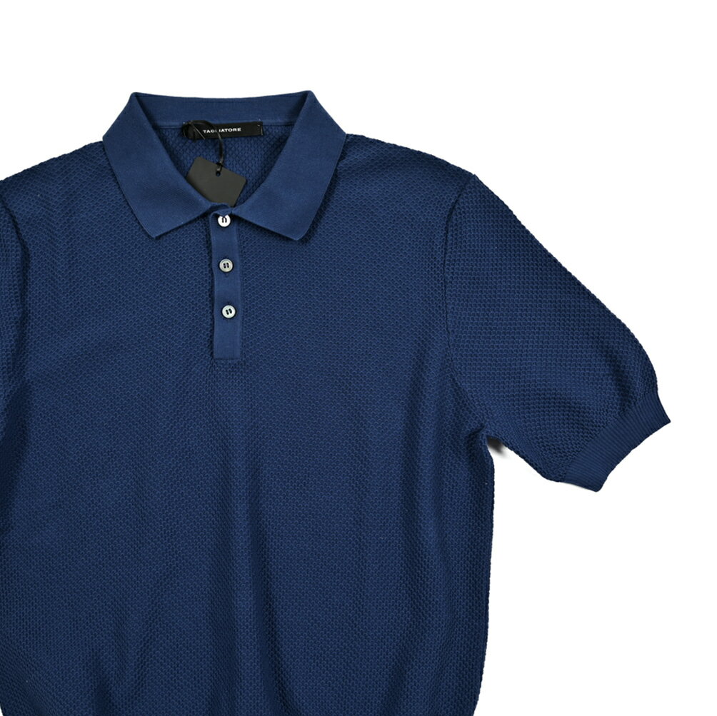 【半額以下】 タリアトーレ TAGLIATORE 【2025年 春夏新作】 半袖ニットポロシャツ ハイゲージ 春夏 メンズ コットン 100% ワッフル編み ネイビー イタリア ブランド MADE IN ITALY