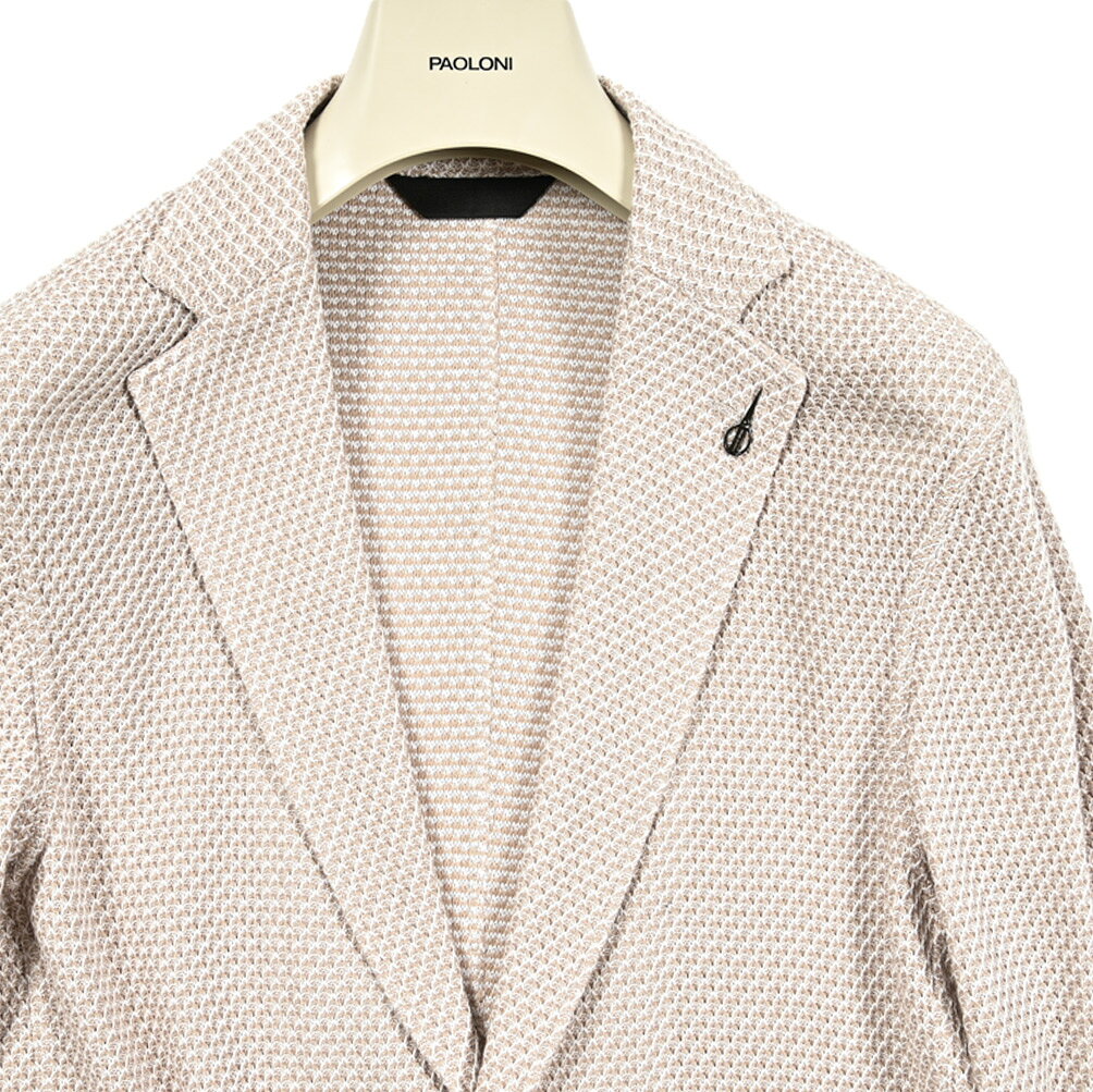 【SALE】 パオローニ PAOLONI MANIFATTURA テーラード ジャージー ニットジャケット 2Bシングル ノッチドラペル 春夏 メンズ ナチュラルストレッチ コットン 100% 織柄 ベージュ イタリア ブランド ブートニエール 3611G957