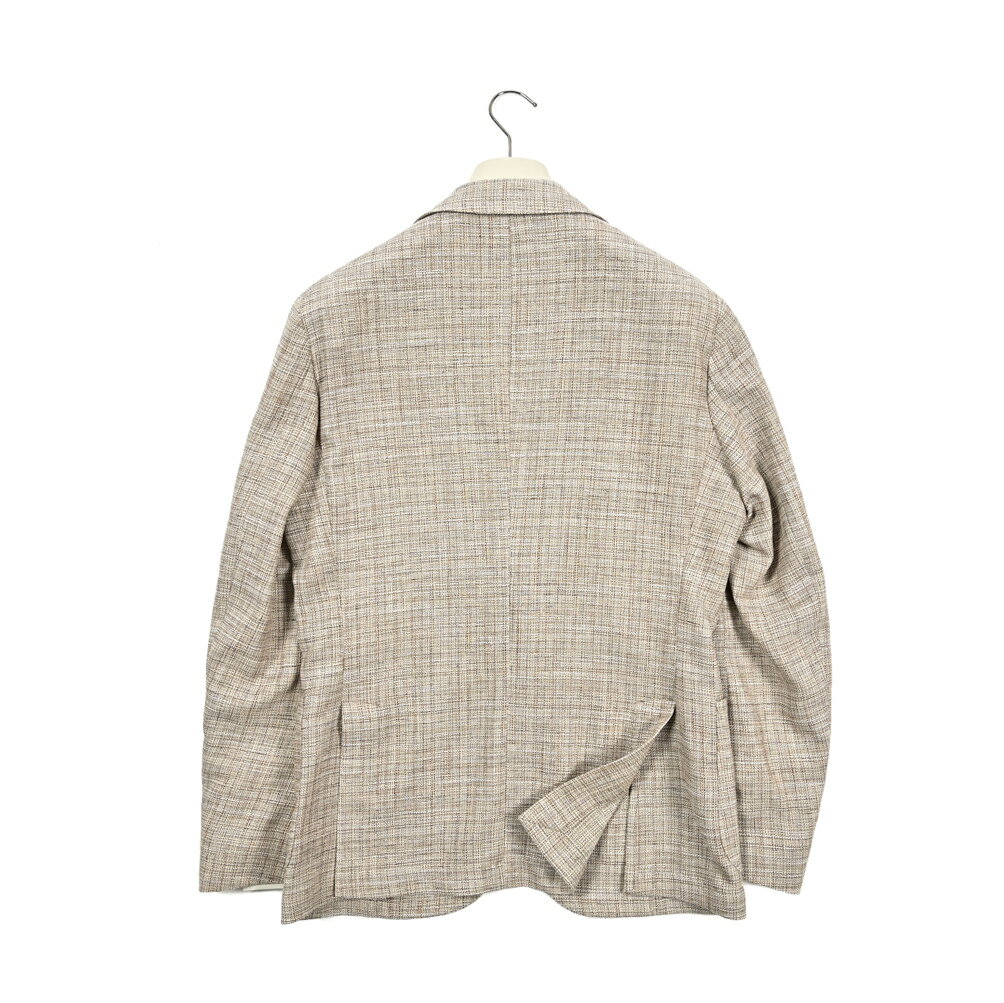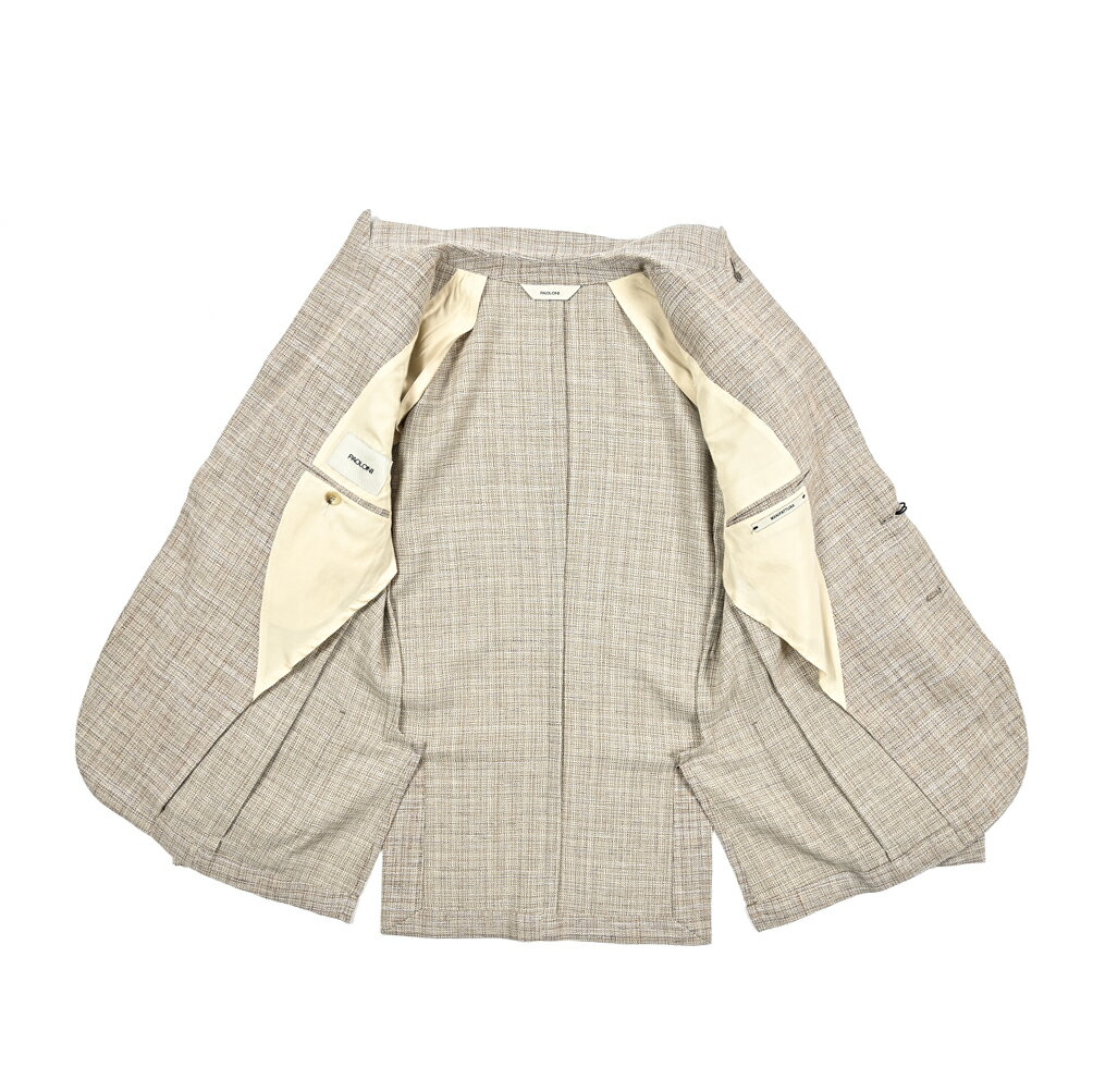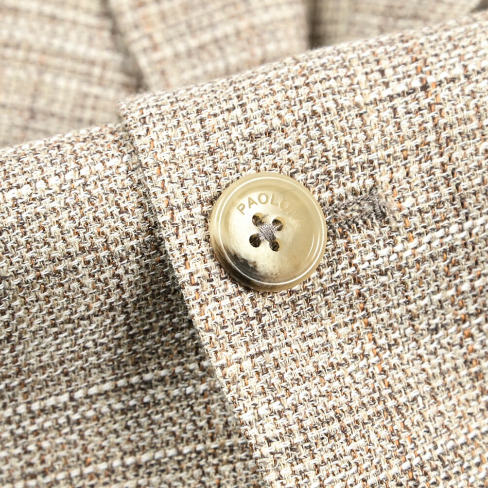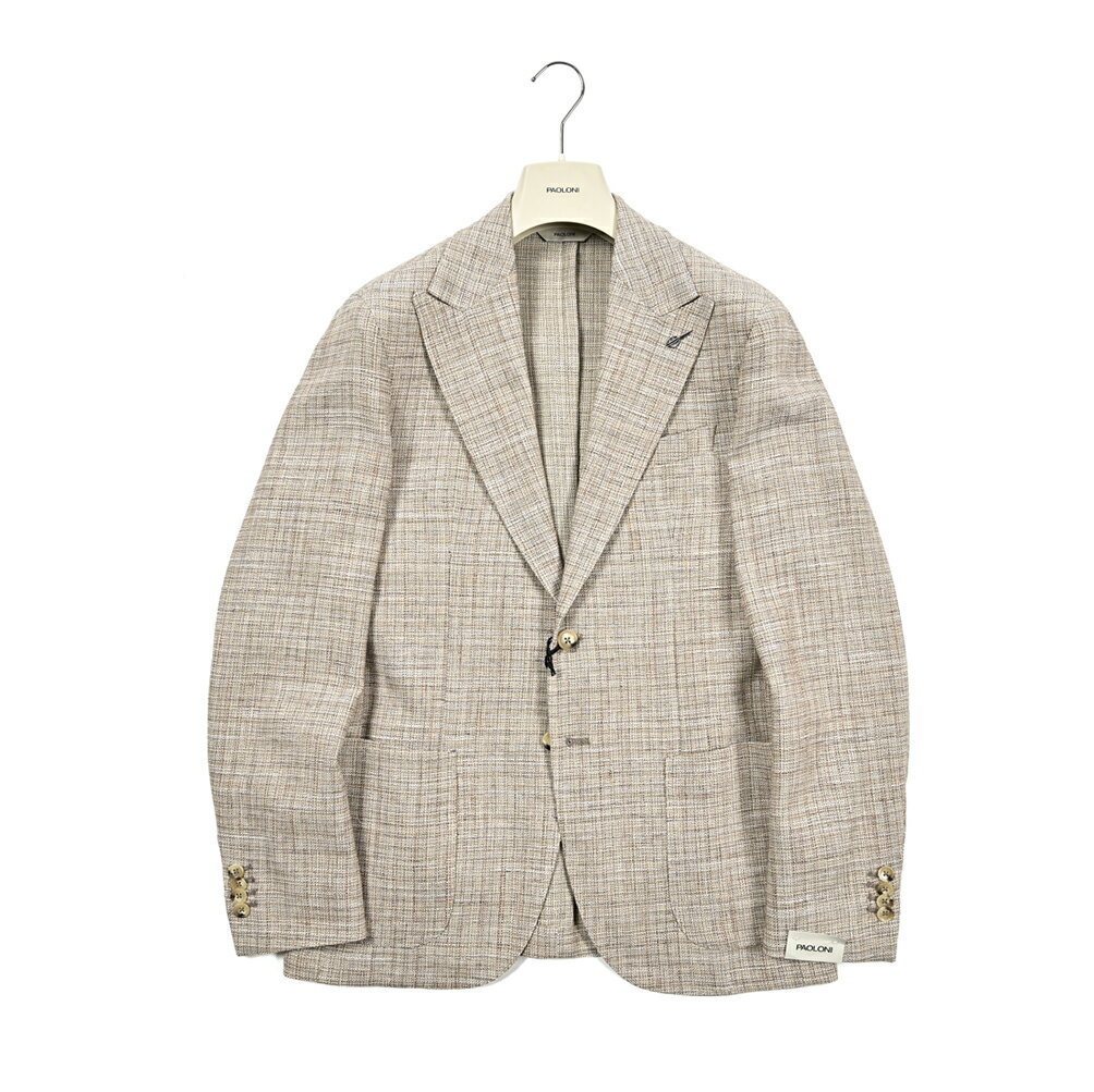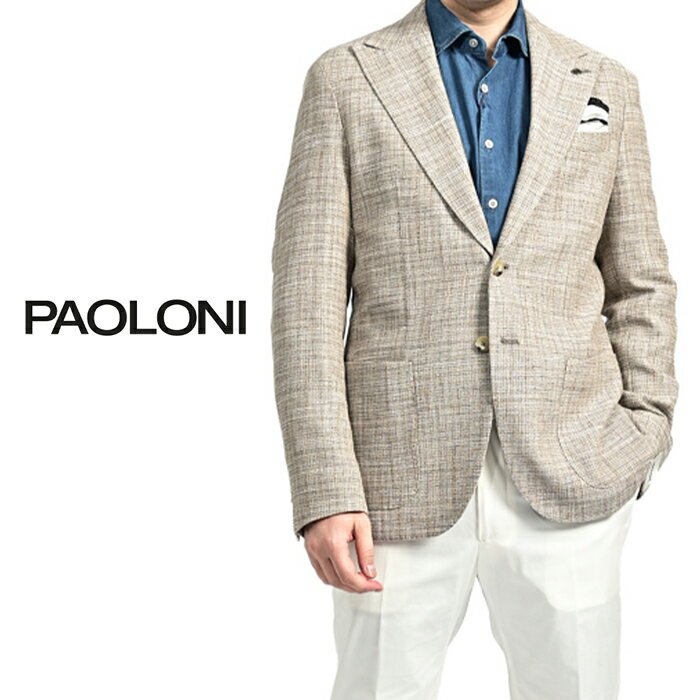 【半額以下】【75%OFF】 パオローニ PAOLONI MANIFATTURA 麻混 テーラードジャケット 2Bシングル ピークドラペル 春夏 メンズ ストレッチ ヴァージンウール コットン リネン 織柄 ベージュ イタリア ブランド ブートニエール 3611G527
