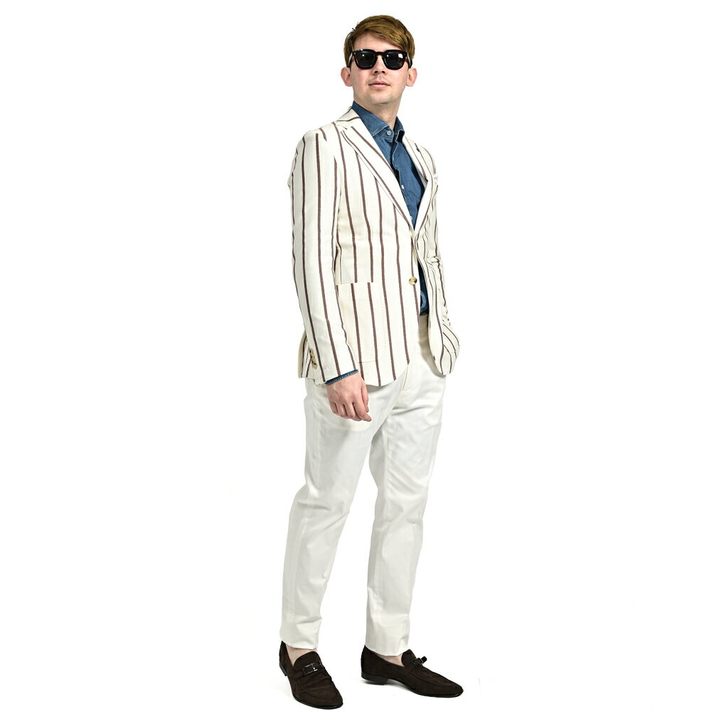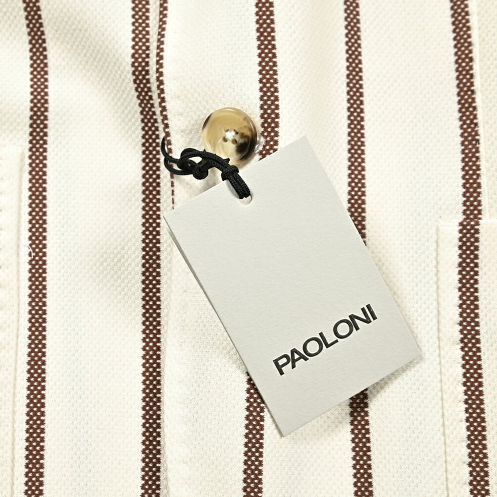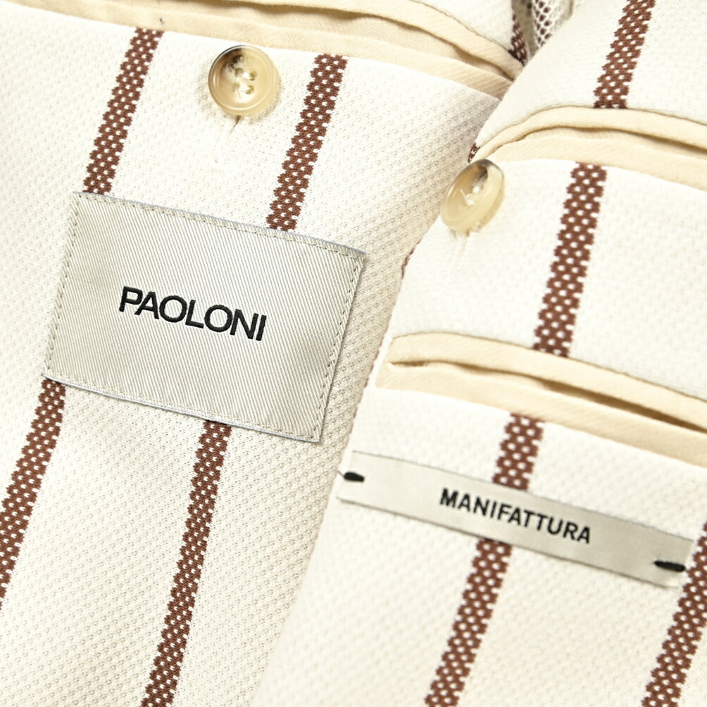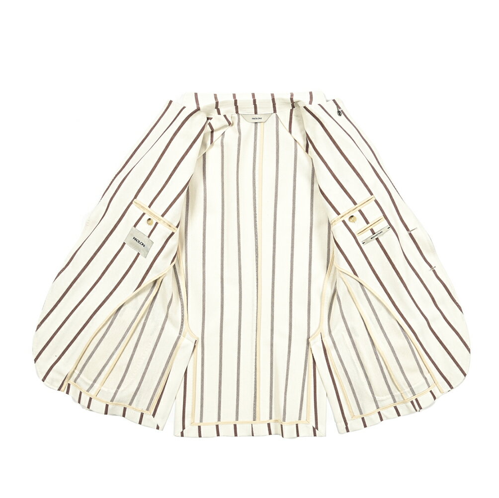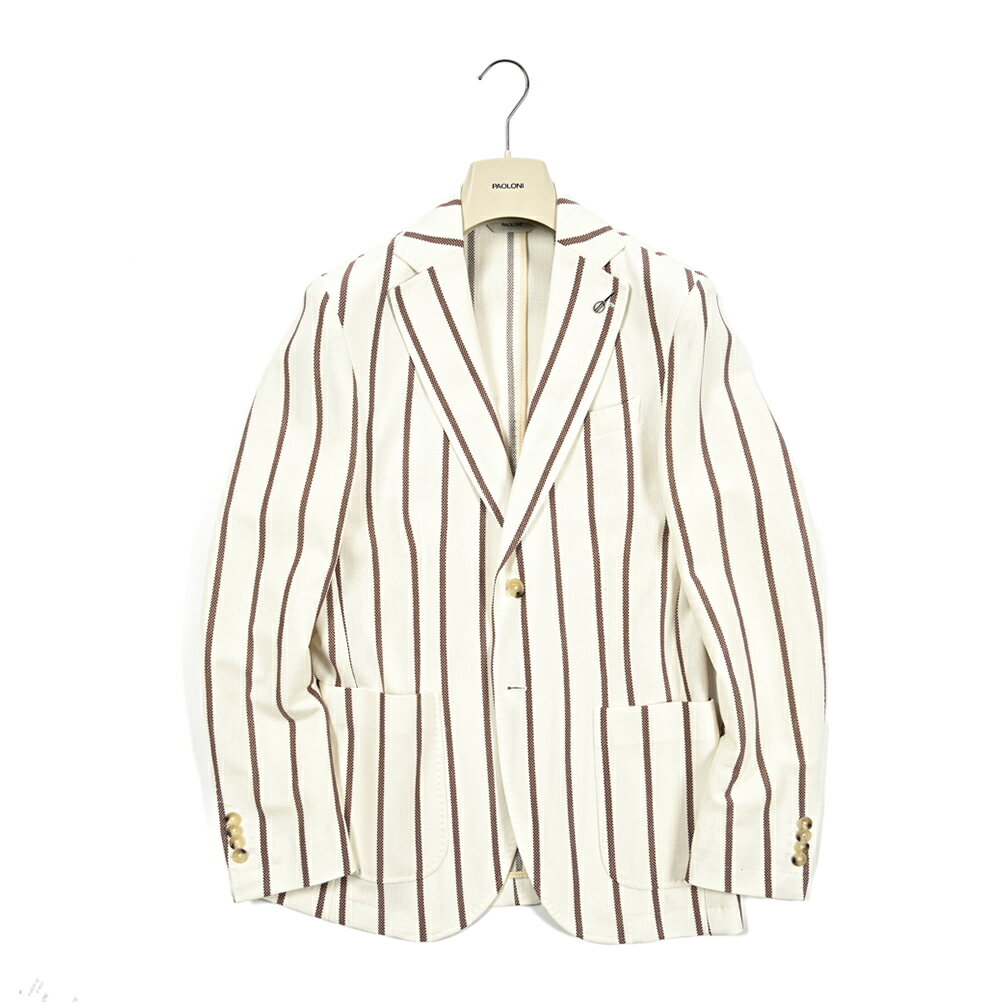 【半額以下】【70%OFF】 パオローニ PAOLONI MANIFATTURA テーラードジャケット ソフトジャケット 2Bシングル 春夏 メンズ コットン 100% ナチュラルストレッチ ストライプ ホワイト イタリア ブランド ブートニエール 3611G927