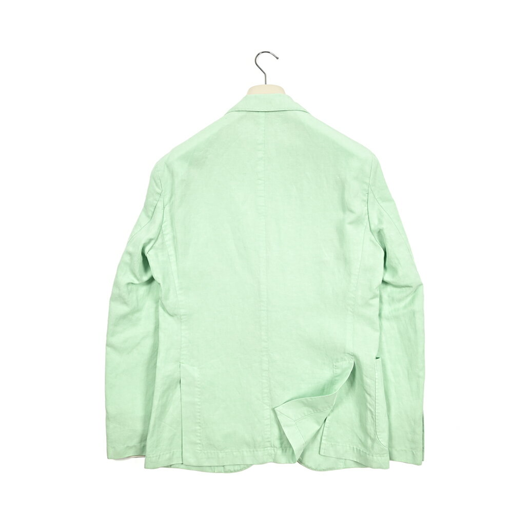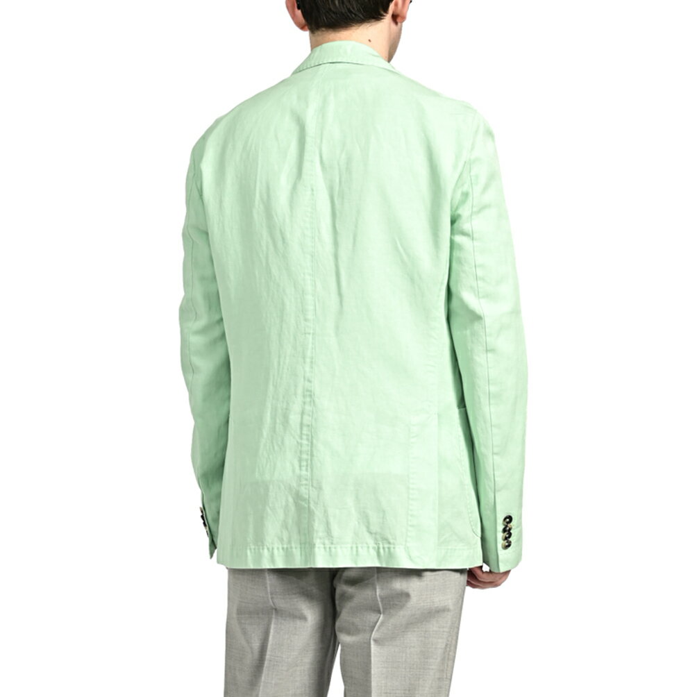 【半額以下】【80%OFF】 パオローニ PAOLONI MANIFATTURA 麻混 テーラードジャケット 2Bシングル ノッチドラペル 春夏 メンズ リヨセル リネン コットン ライトグリーン イタリア ブランド ブートニエール 3611G517T