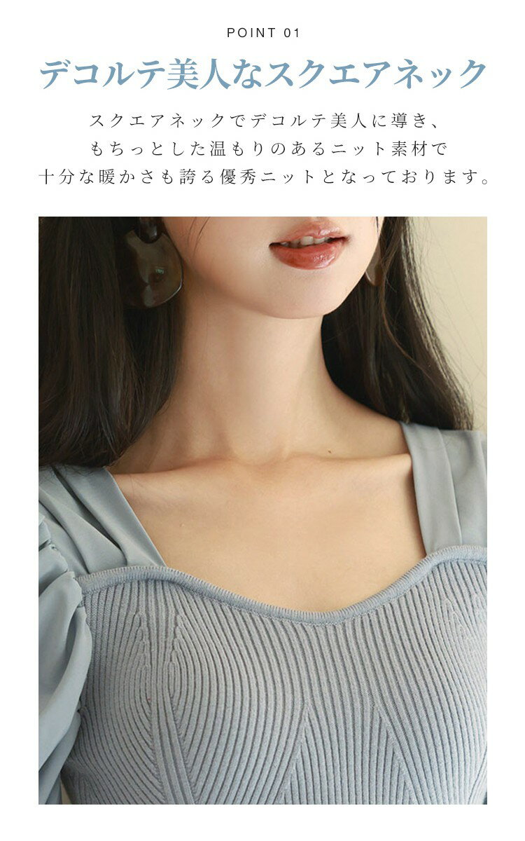 ニット レディース トップス 長袖 ドッキングニット プルオーバー ギャザースリーブ ボリュームスリーブ 二の腕カバー ぴったり レイヤード ジャストサイズ きれいめ 薄手大人 おしゃれ 可愛い 秋物 SAISON DE PAPILLON sdp0179