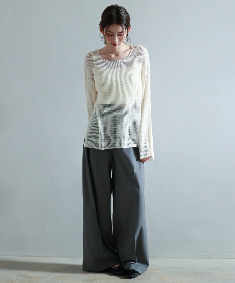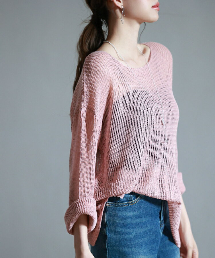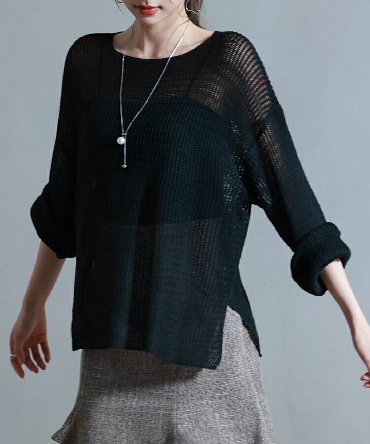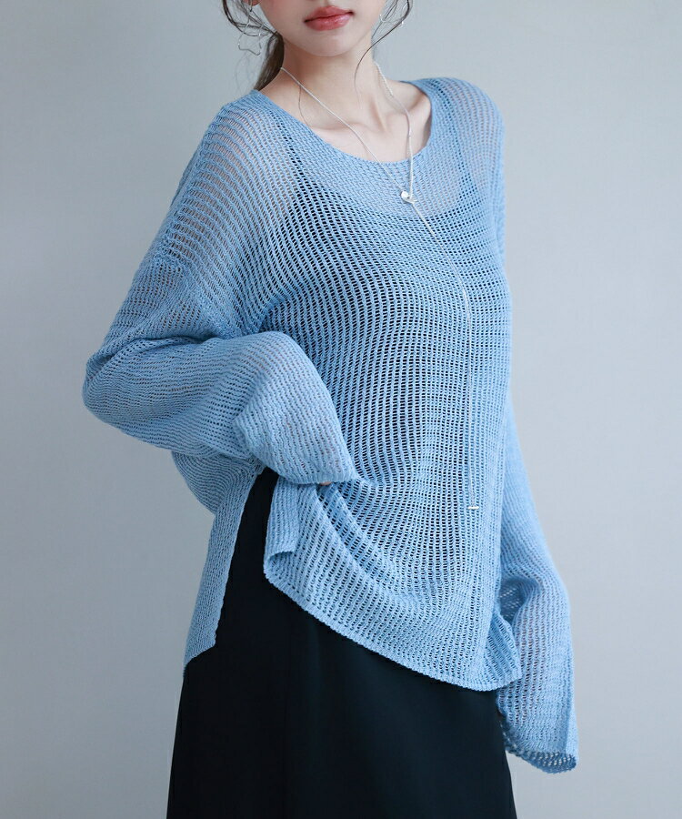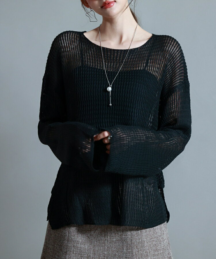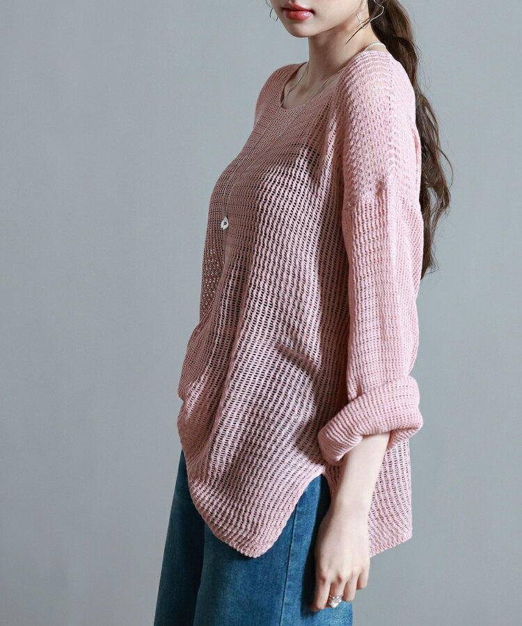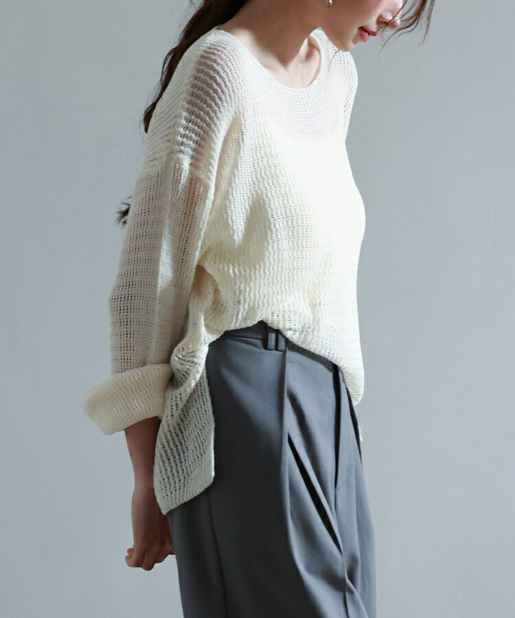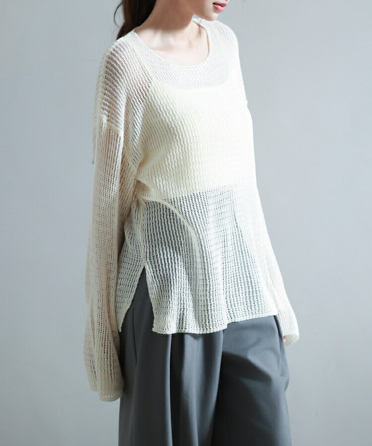 ニット レディース トップス プルオーバー 透かし編み 長袖 ドロップショルダー ボートネック ワンショルダー リラックス 薄手 涼しい ゆるニット 体型カバー スリット入り 透け感 シアー レイヤード カジュアル 春 夏 SAISON DE PAPILLON sdp8061