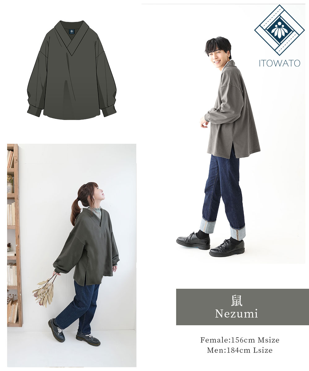 【送料無料】【ITOWATO 花月コラボ】和+トレーナー(夜長・鼠・柳)(M・Lサイズ) 秋服 春服 和服 和装 大人用 女性用 レディース 男性用 メンズ ユニセックス 男女兼用