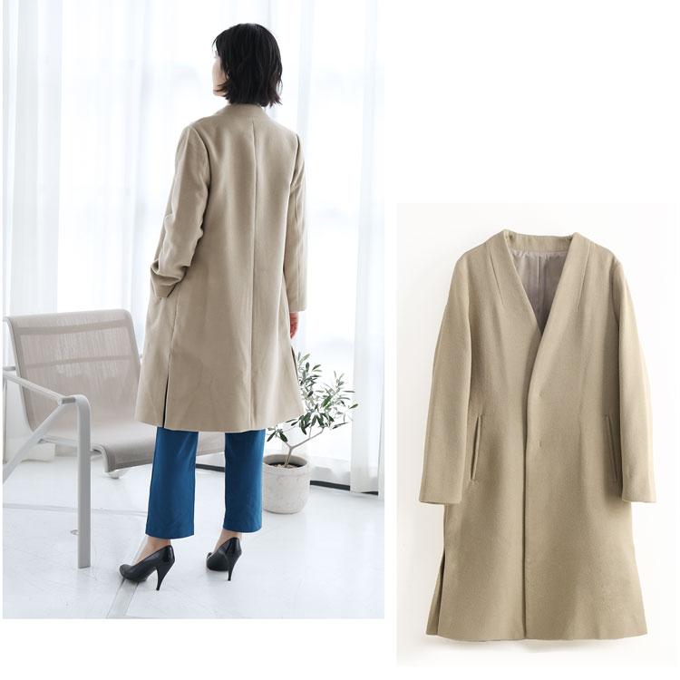 【期間限定価格】ノーカラーコート レディース 卒業式 卒園式 入学式 Vネック ロング丈 ロングコート アウター コート 母 おしゃれ シンプル デザイン メンズライク 秋 冬 ノーカラー 冠婚葬祭 フォーマル 秋 冬 春 あたたかい ギフト プレゼント 6F (08000264r)