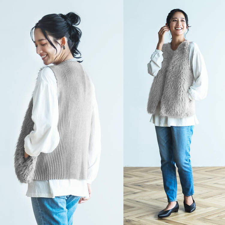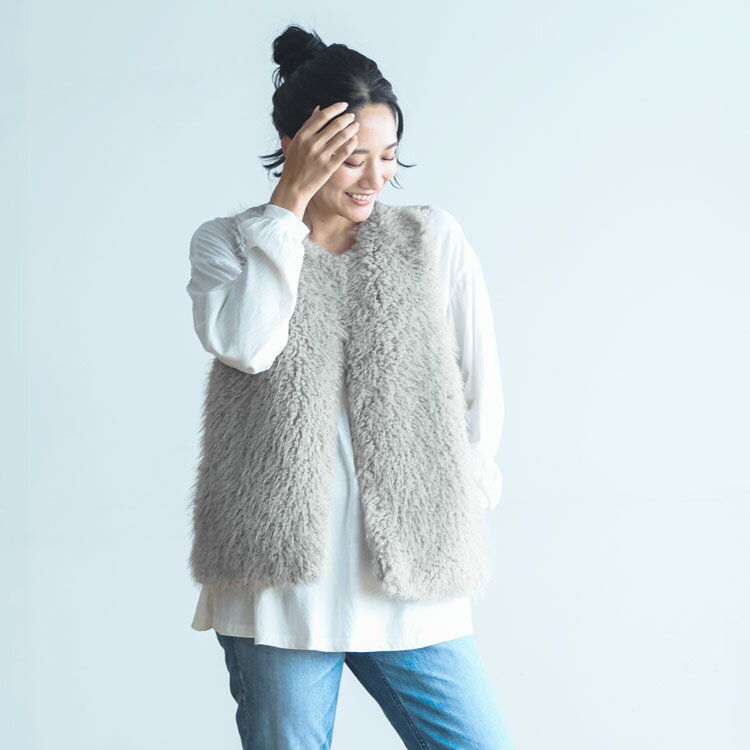 エコファー ファーベスト filomo ブランド フィローモ ニットベスト ノーカラー もこもこ 上品 羽織り きれいめ ポケット ボリューム感 羽織 ベスト フェイクファー 軽量 軽い レディース 女性 大人 暖かい ニット クリスマス ギフト プレゼント 6F (08000293r)