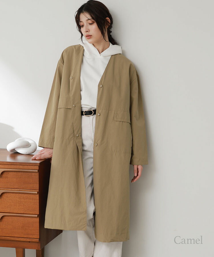 コート ロング レディース 薄手 撥水 スプリングコート ライトアウター Filomo 軽量 ノーカラー ロング 春 アウター キャメル ブラック 秋 ゆったり 通勤 通学 ビジネス 軽い 20代 30代 40代 大きいサイズ 母の日 ギフト プレゼント 6F (08000291r)