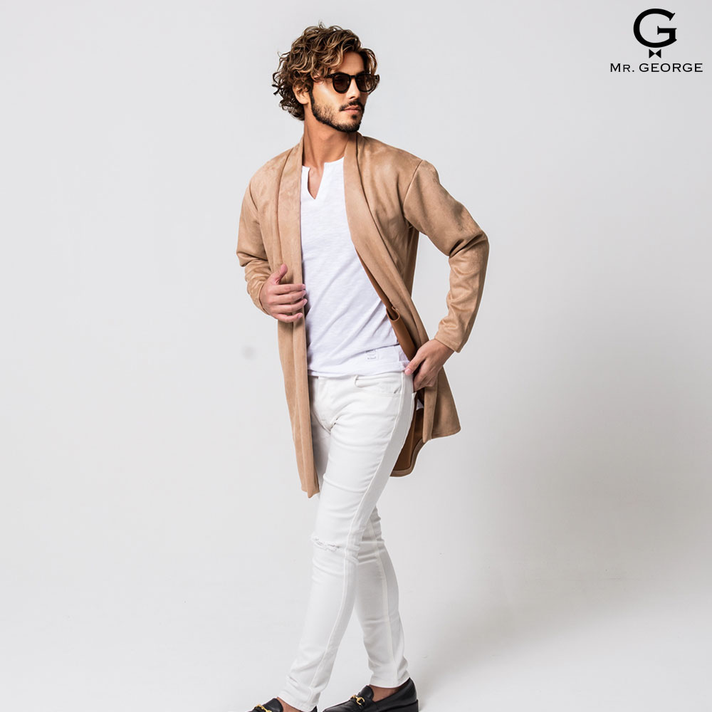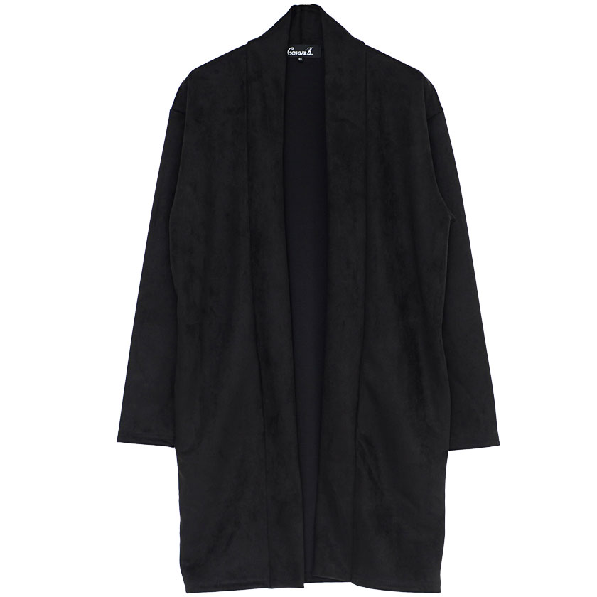 イケオジ ロング カーディガン メンズ 40代 おしゃれ 50代 アウター ファッション 60代 ミスタージョージ ブランド 大人 トップス 羽織り ガウン ショール ショールガウン コート スウェード スエード 無地 シンプル 黒 L きれいめ