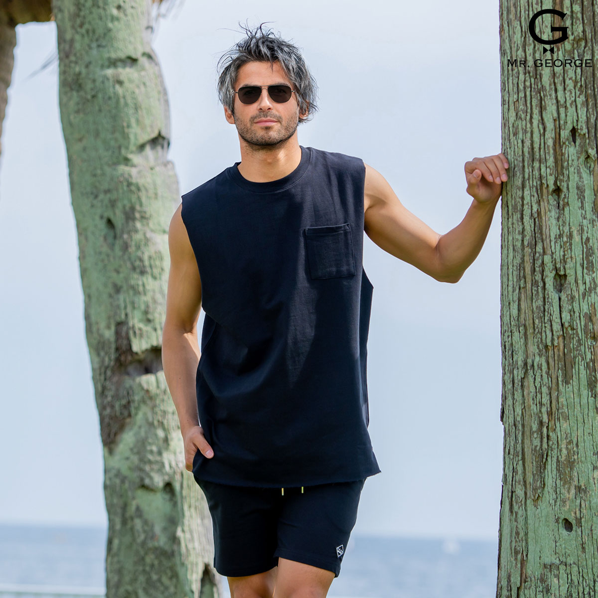 Tシャツ メンズ ノースリーブ タンクトップ ミスタ―ジョージ 40代 50代 ファッション おしゃれ 大人 イケオジ ブランド ちょいワル 大きいサイズ トップス カットソー オーバーサイズ スウェット スエット 白 黒