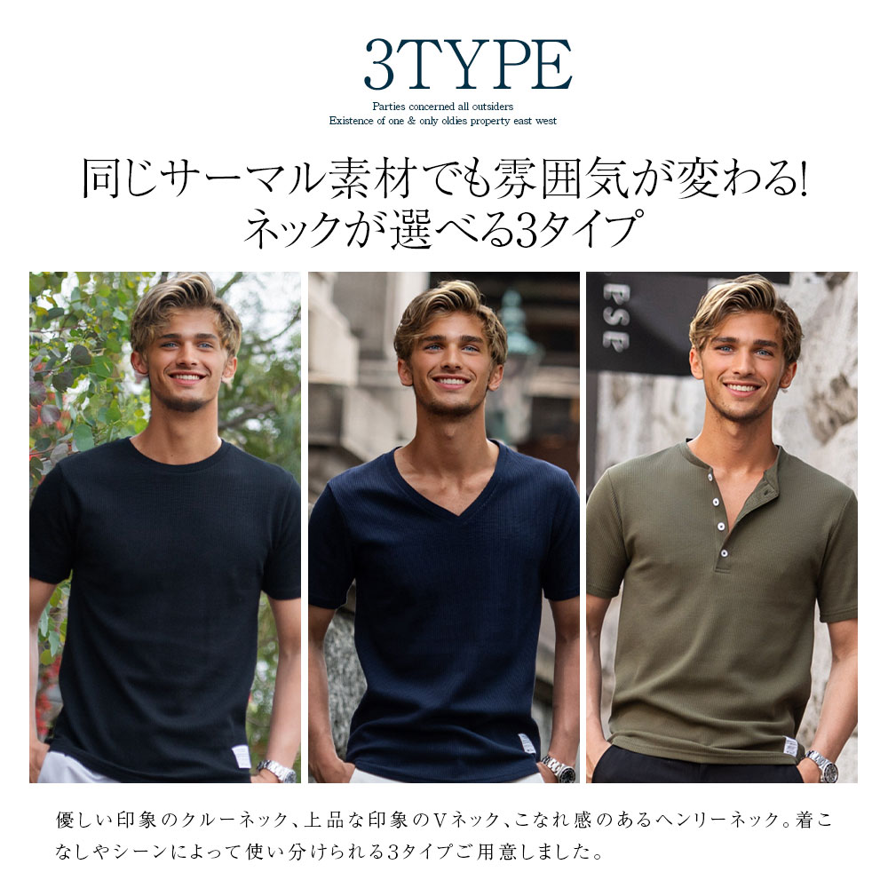 イケオジ ネックが選べるシンプル 半袖Tシャツ ミスタ—ジョージ 40代 50代 60代 ファッション おしゃれ 大人 メンズ 半袖 ブランド ワッフル サーマル クールネック Vネック ヘンリーネック 白Tシャツ カットソー 【ゆうパケット1】