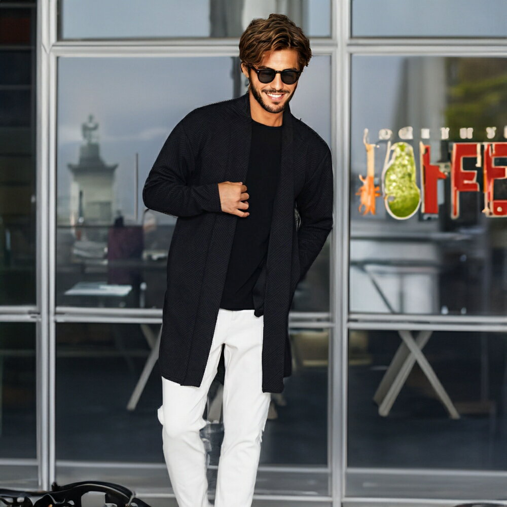 ミスタ—ジョージ 40代 50代 ファッション おしゃれ イケオジ ちょいワル カーディガン メンズ ショールガウン ガウン アウター おしゃれ キルティング ストレッチ 伸縮性 リラックス 男性 男 ワイン ネイビー ブラック 黒 服 秋 秋服 冬 ファッション 男
