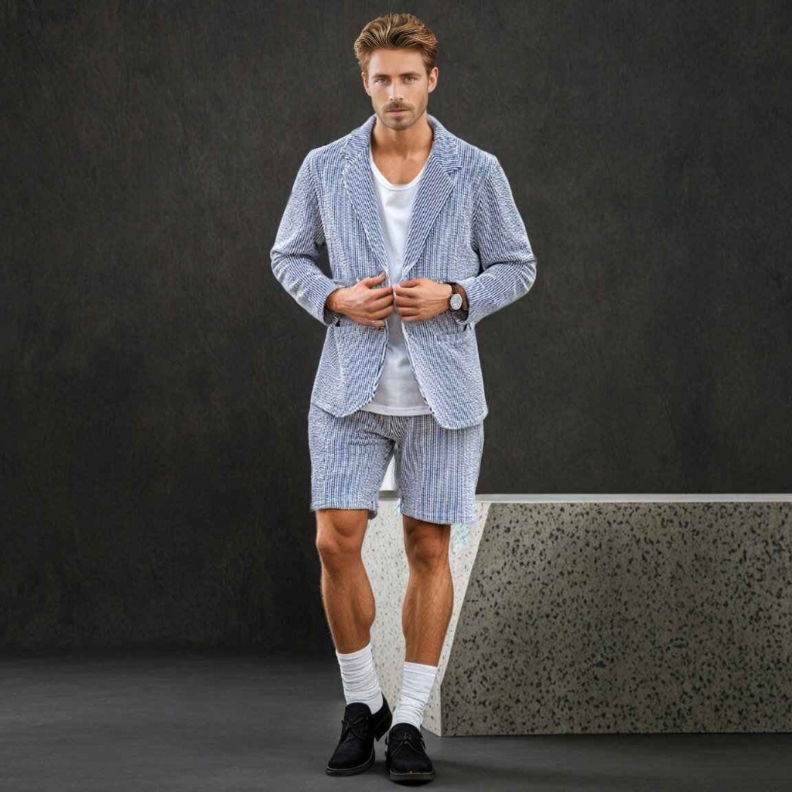 イケオジ ちょいワル 大人男性 40代 おしゃれ 50代 メンズ ファッション テーラードジャケット 夏 ジャケット シアサッカー シアサッカージャケット 清涼 涼しい 細身 スリム タイト ストライプ ネイビー グレー 黒 紺 白 LL キャバリア ブランド シンプル 大人